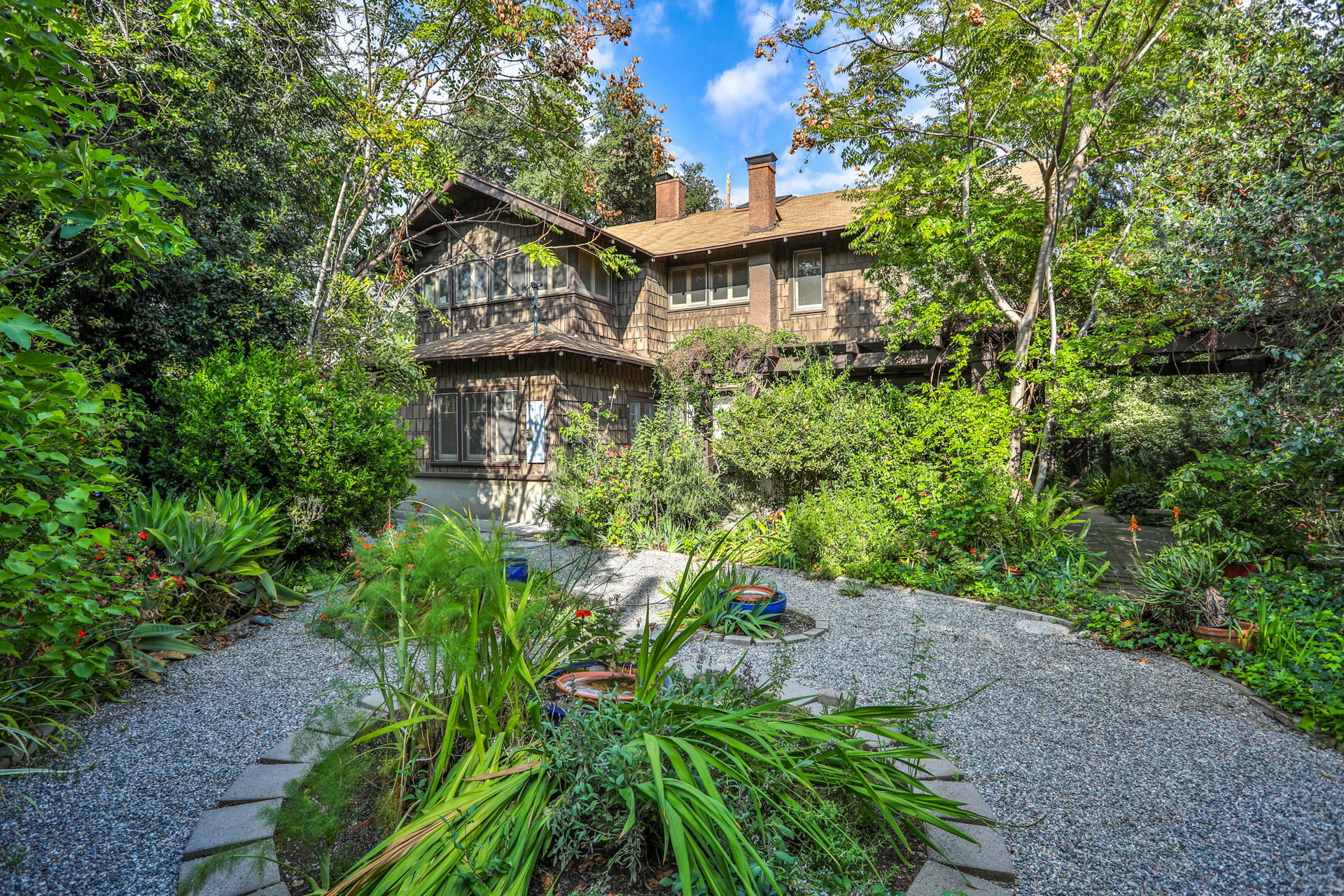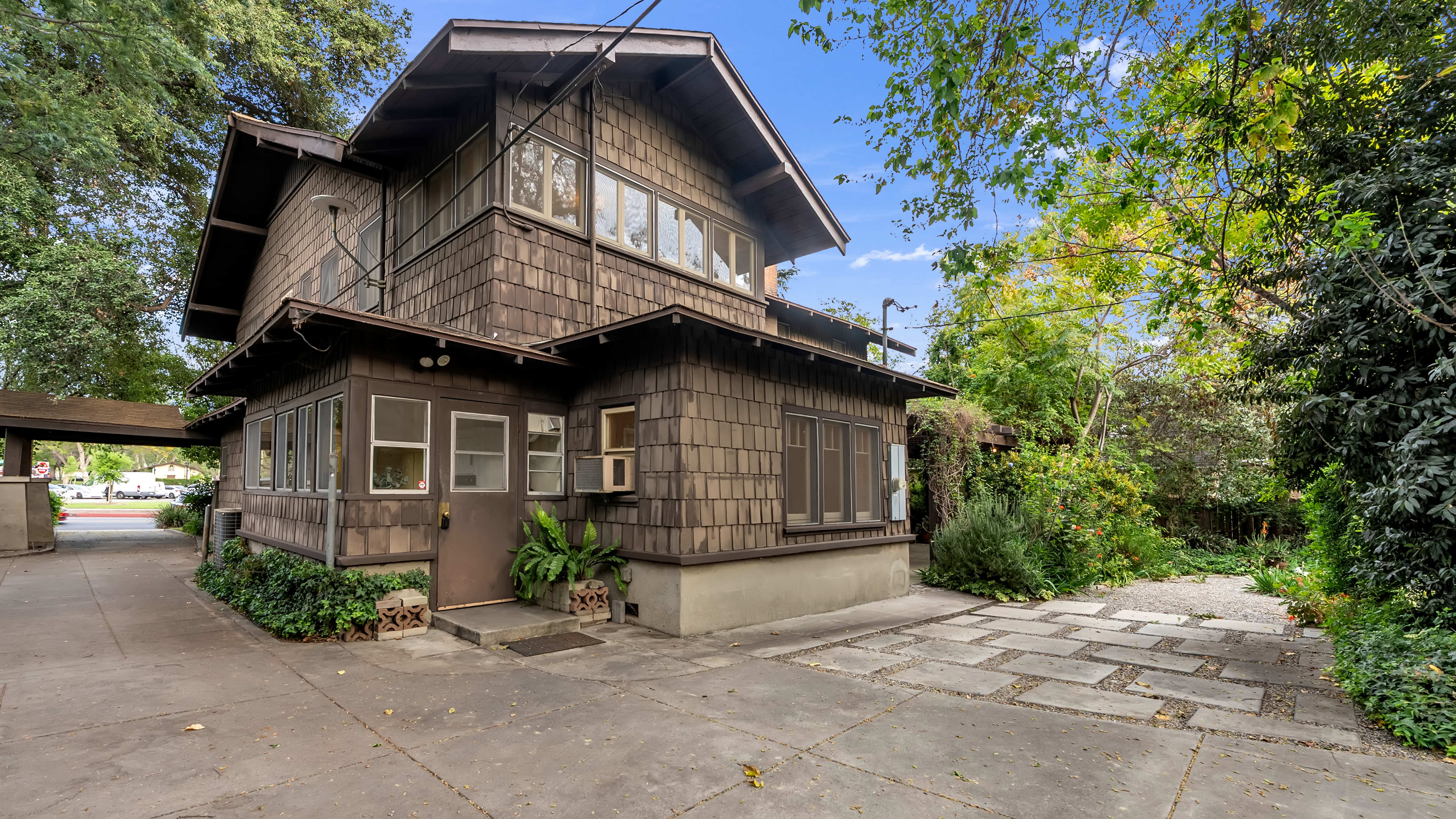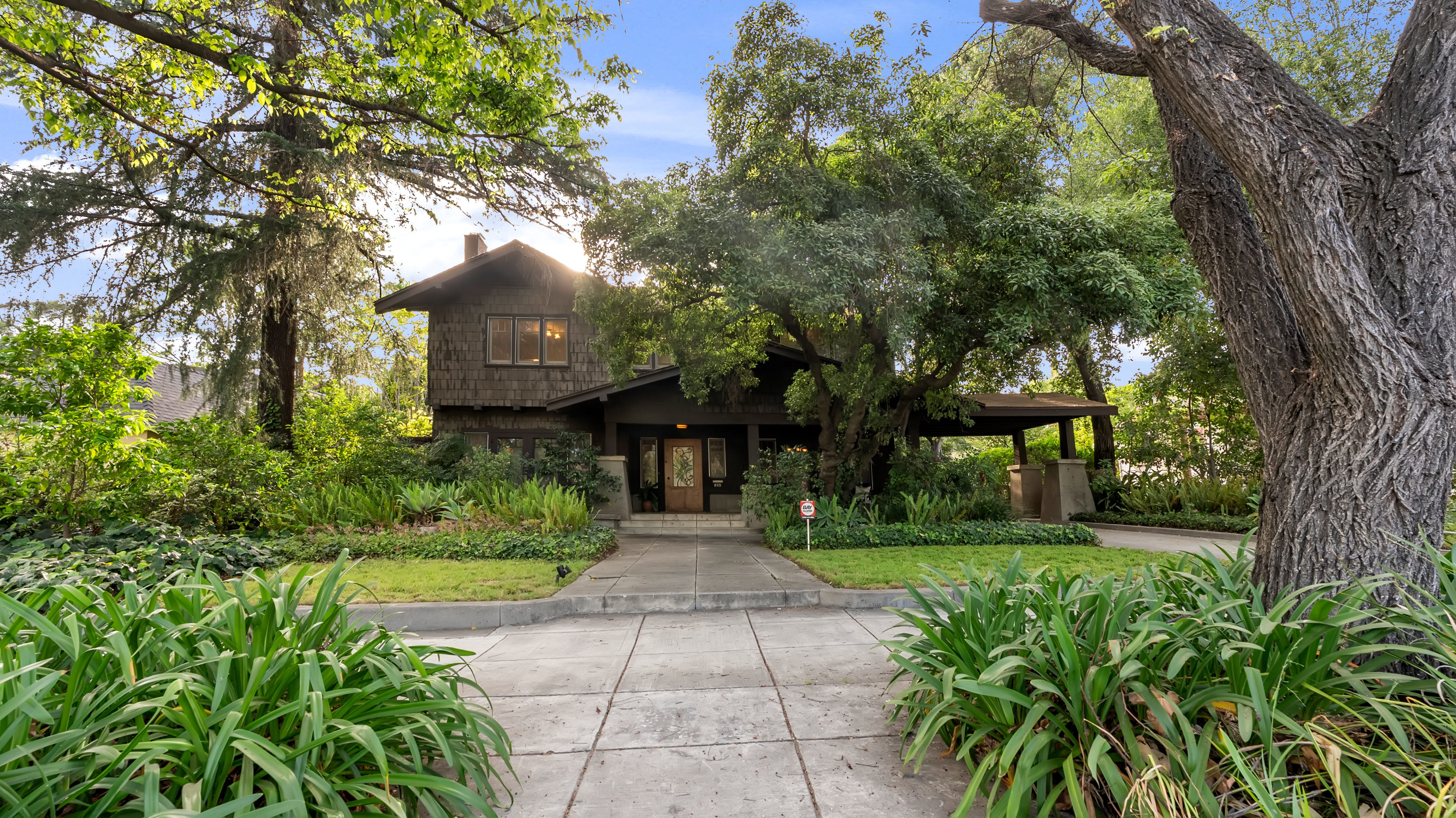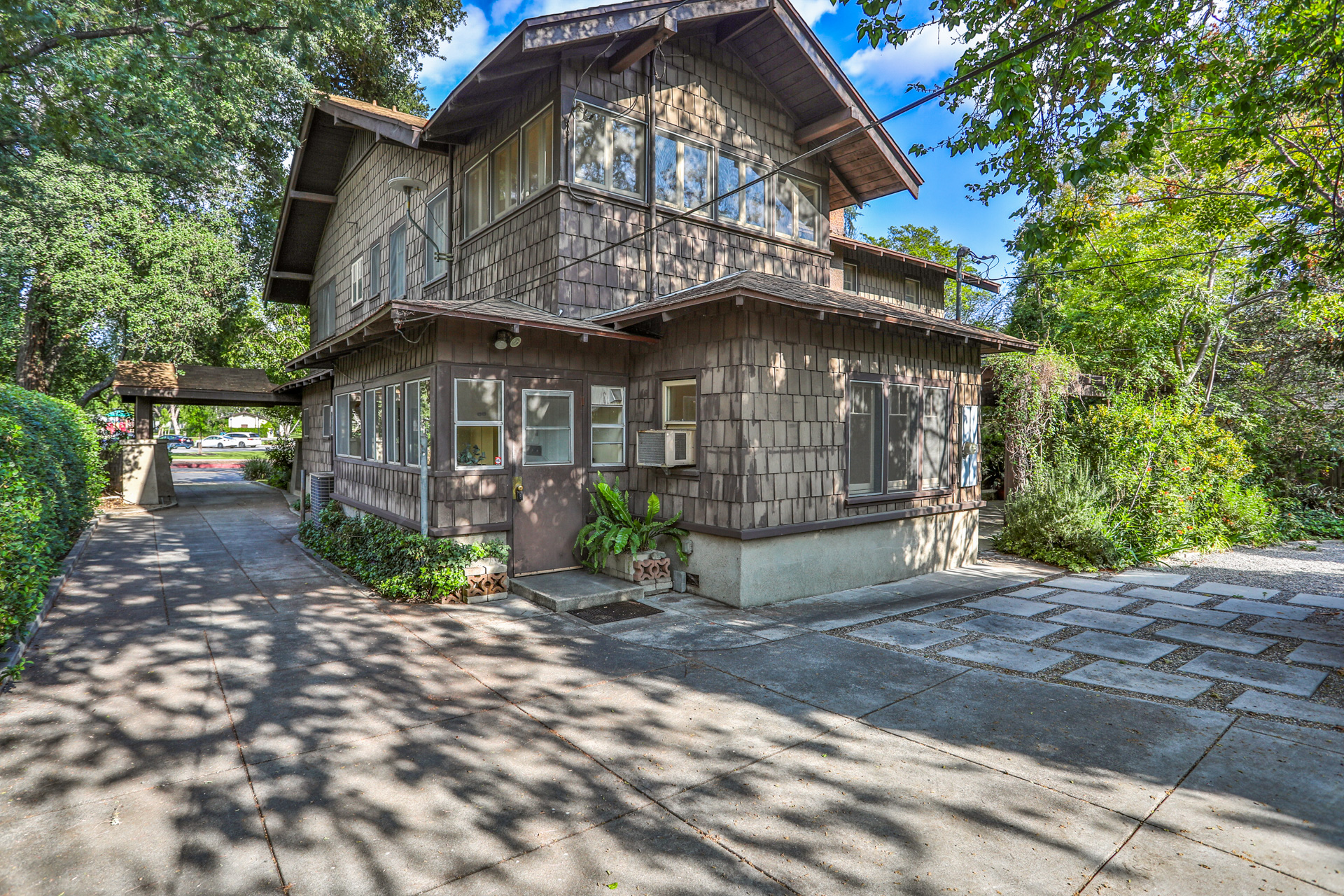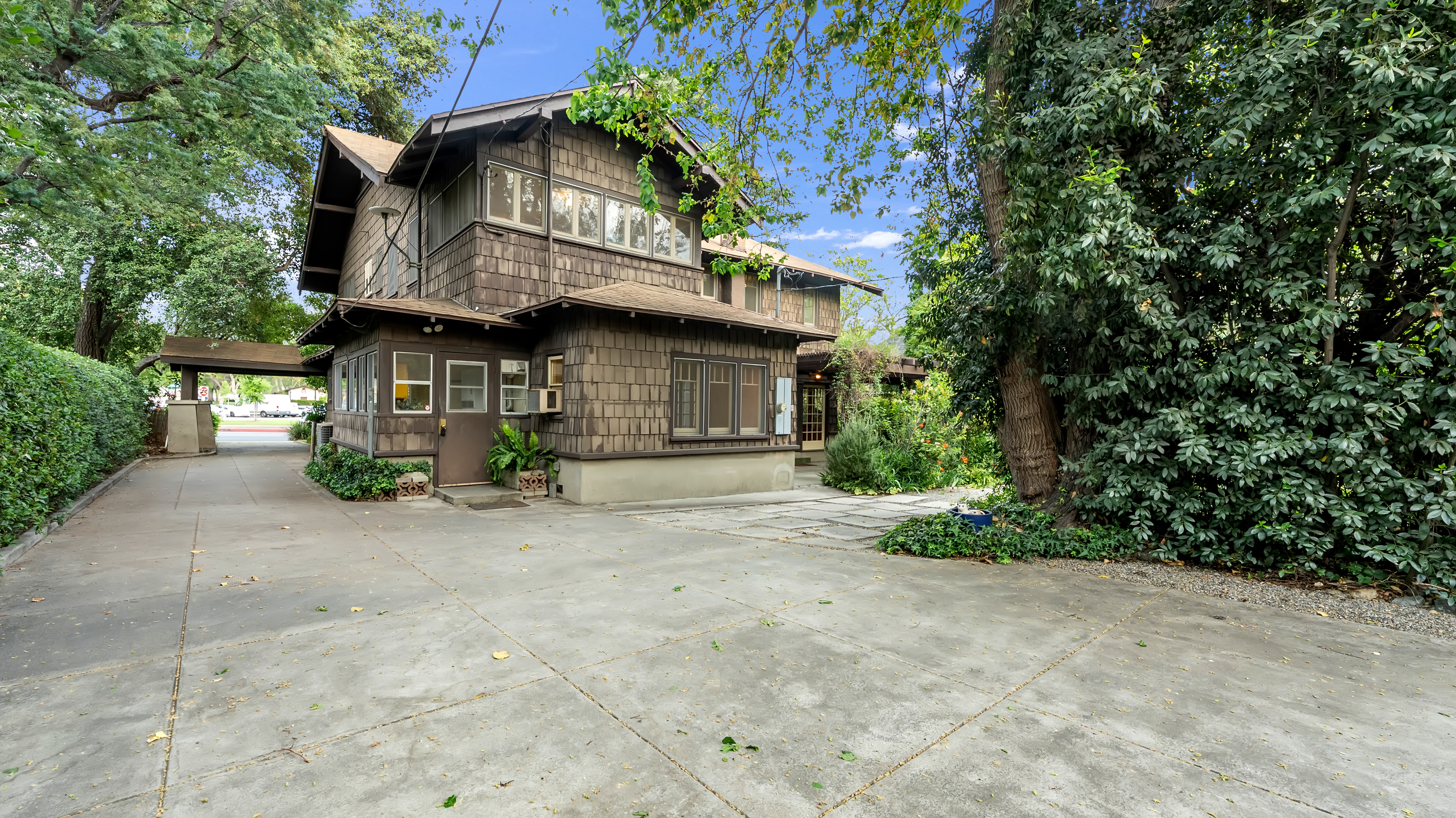 Iconic Greene & Greene Architectural model design, per State of California Historic Resources Inventory Survey. Prime locale across from Memorial Park that has front row seating for the July 4th Parade and additional neighborhood festivities. Originally built by William Stover and later owned by the Claremont McKenna College family. Expansive covered front porch and porte-cochere grace the front elevation of this magnificent property. Beautiful oak hardwood flooring, multiple built-ins, sliding pocket doors, etc. Central air and heating. Main house includes 4 Bedrooms + Study + Office + Den. Guest House ADU includes a Bedroom & full Bath. Lush foliage and tall mature trees provide a forest like tranquil and picturesque setting. Seldom does a unique residence become available in Claremont's most coveted Claremont Village locale. Long driveway leads to the rear separate guest house and 2-car garage. Convenient to The Claremont Colleges and famed downtown Claremont Village shopping & more. This home would be a prime candidate for Mills Act property tax savings!