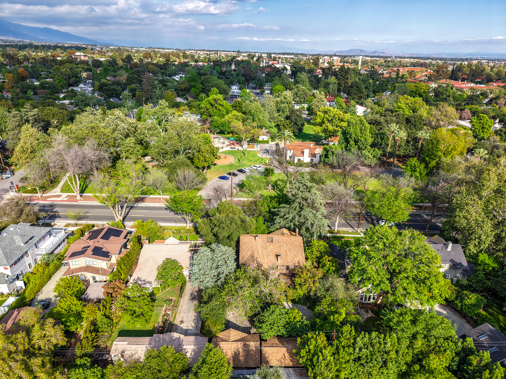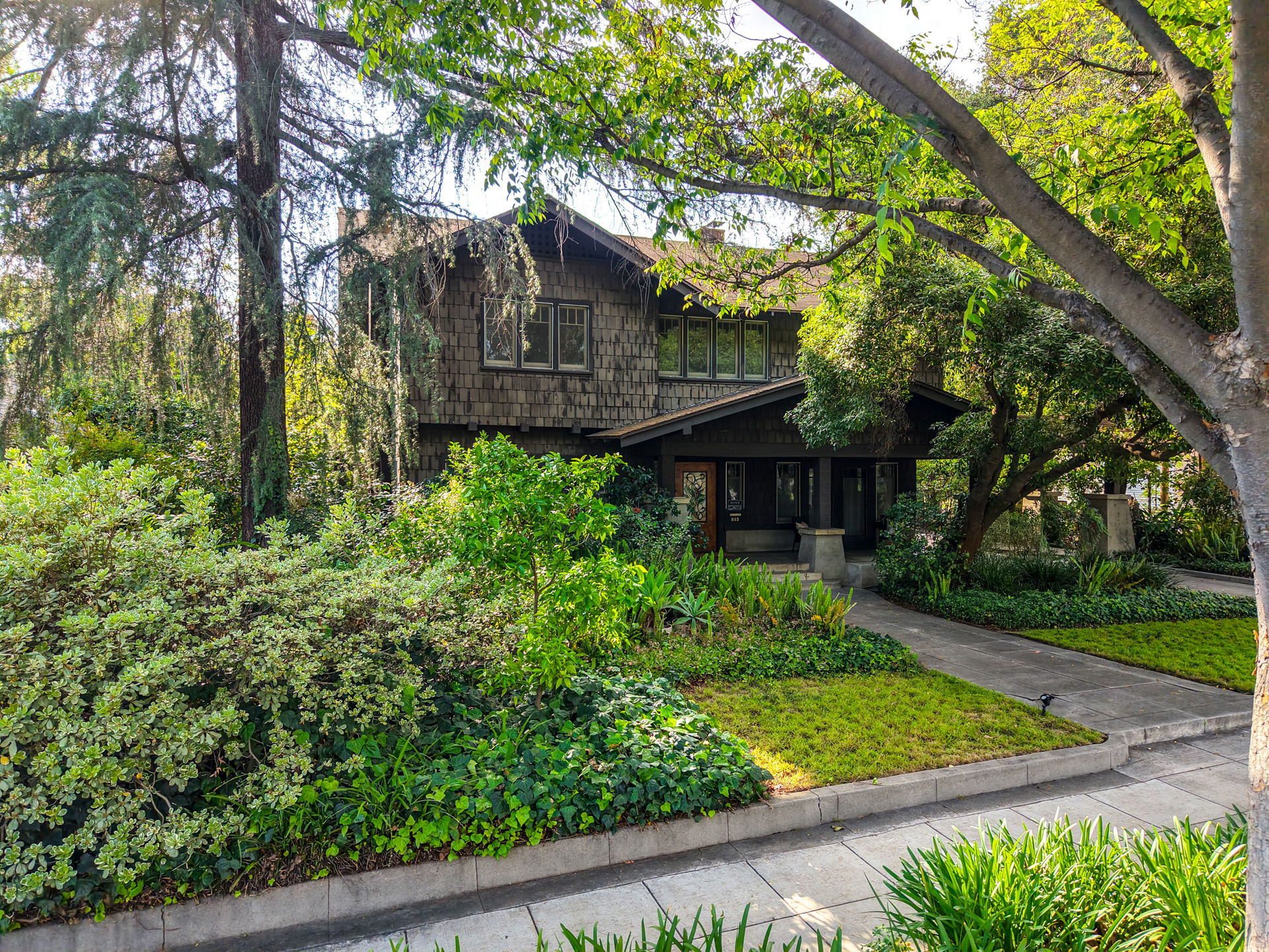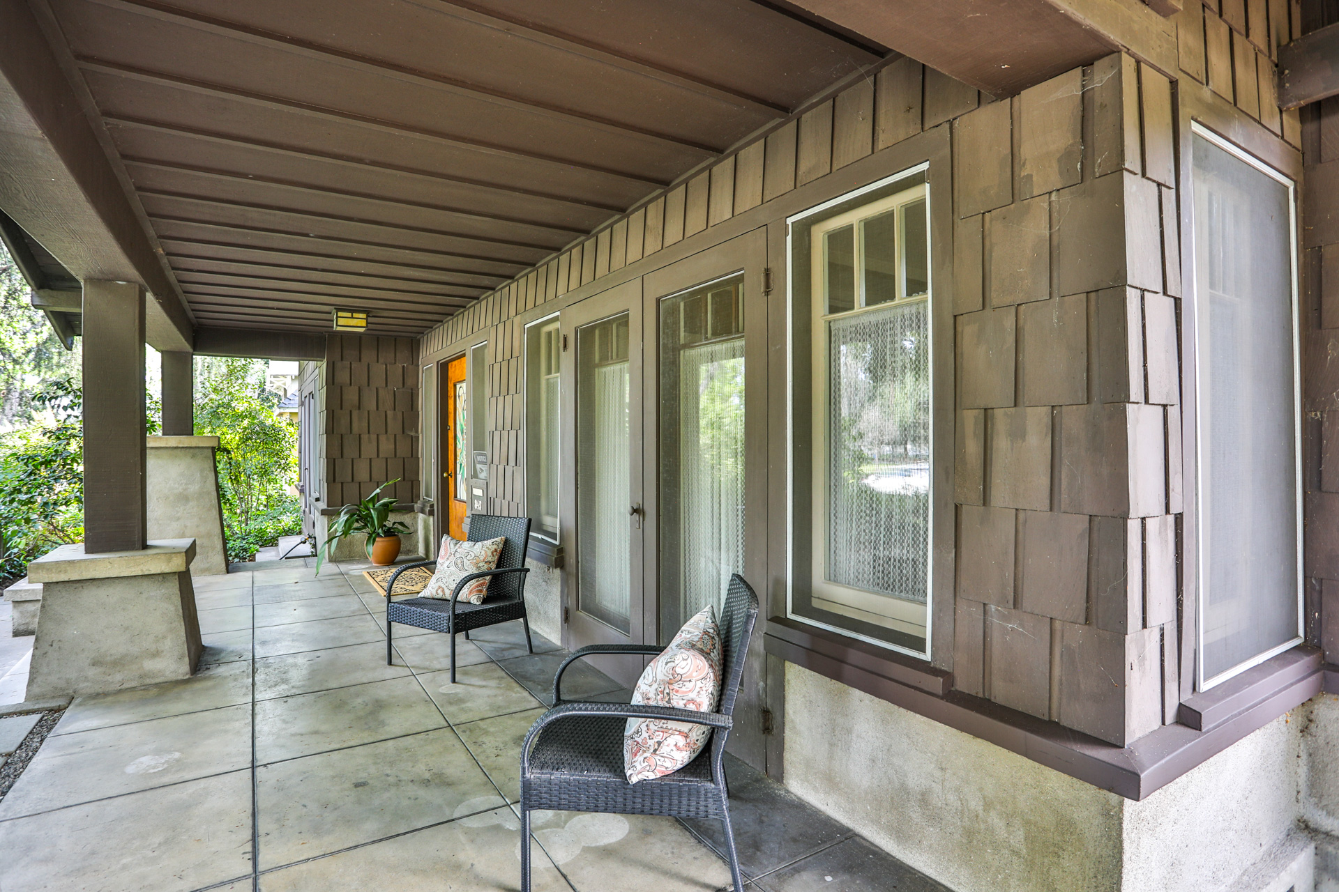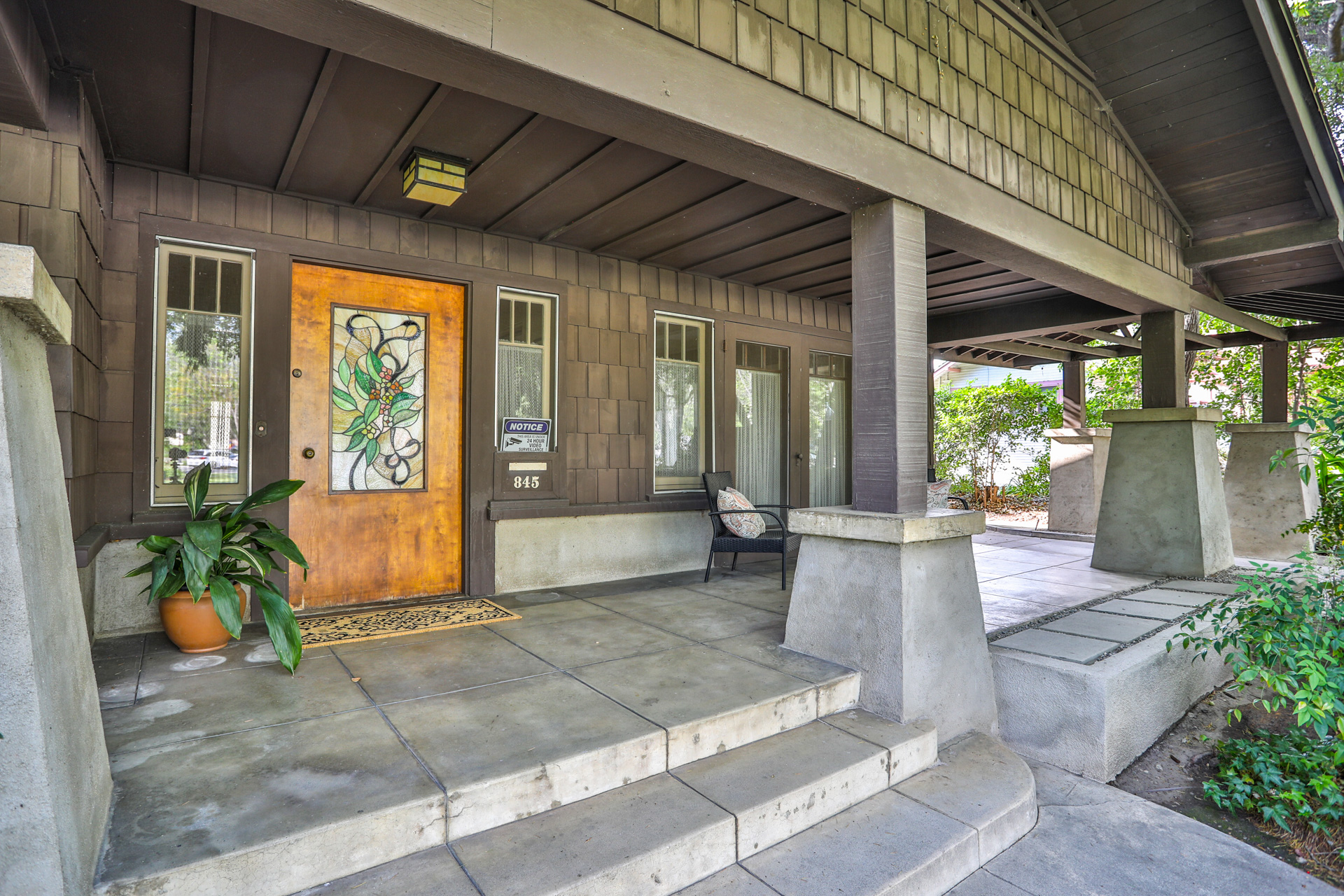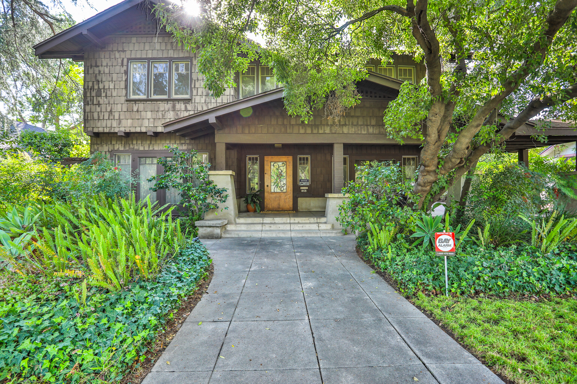 Iconic Greene & Greene Architectural model design, per State of California Historic Resources Inventory Survey. Prime locale across from Memorial Park that has front row seating for the July 4th Parade and additional neighborhood festivities. Originally built by William Stover and later owned by the Claremont McKenna College family. Expansive covered front porch and porte-cochere grace the front elevation of this magnificent property. Beautiful oak hardwood flooring, multiple built-ins, sliding pocket doors, etc. Central air and heating. Main house includes 4 Bedrooms + Study + Office + Den. Guest House ADU includes a Bedroom & full Bath. Lush foliage and tall mature trees provide a forest like tranquil and picturesque setting. Seldom does a unique residence become available in Claremont's most coveted Claremont Village locale. Long driveway leads to the rear separate guest house and 2-car garage. Convenient to The Claremont Colleges and famed downtown Claremont Village shopping & more. This home would be a prime candidate for Mills Act property tax savings!