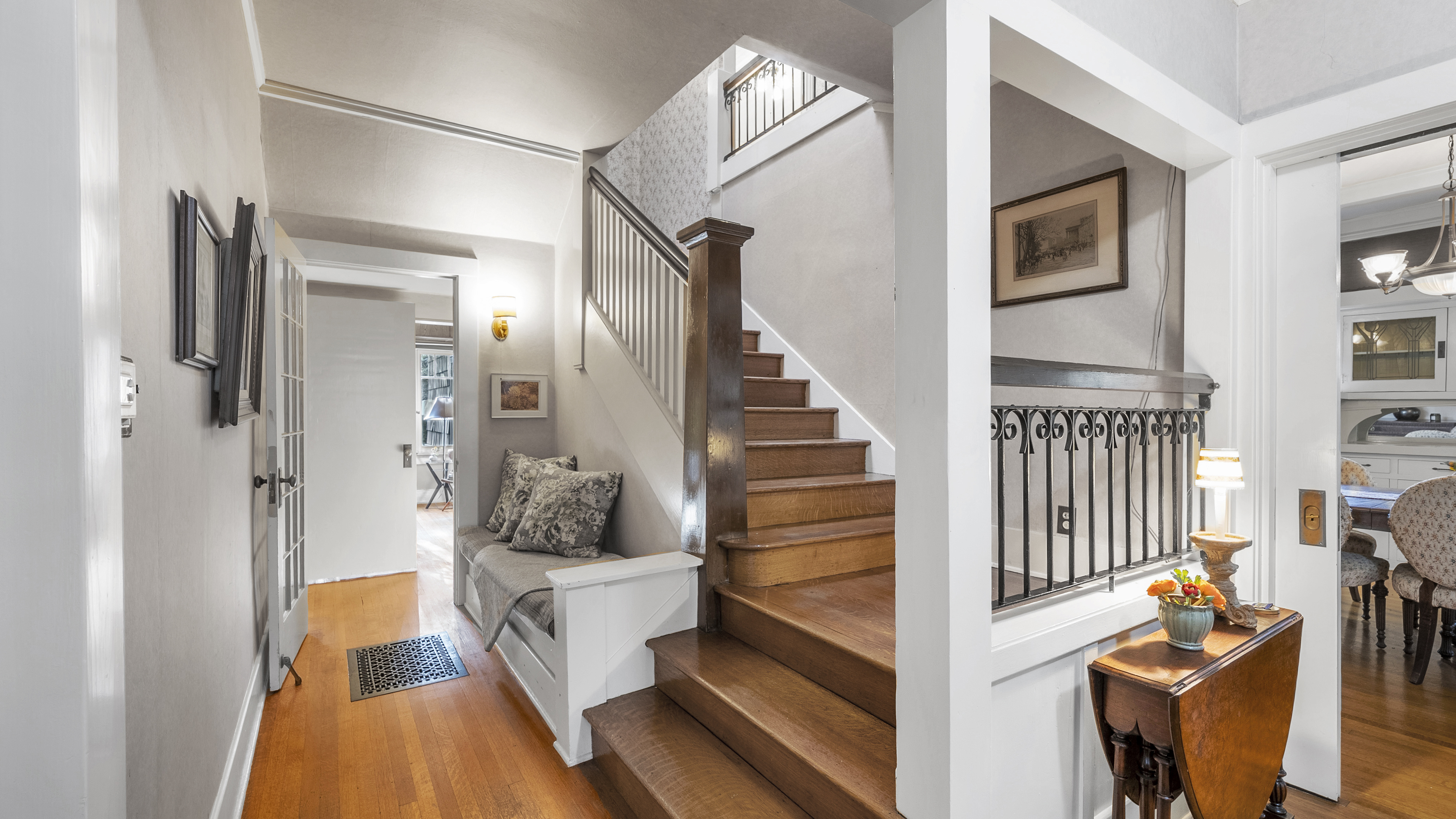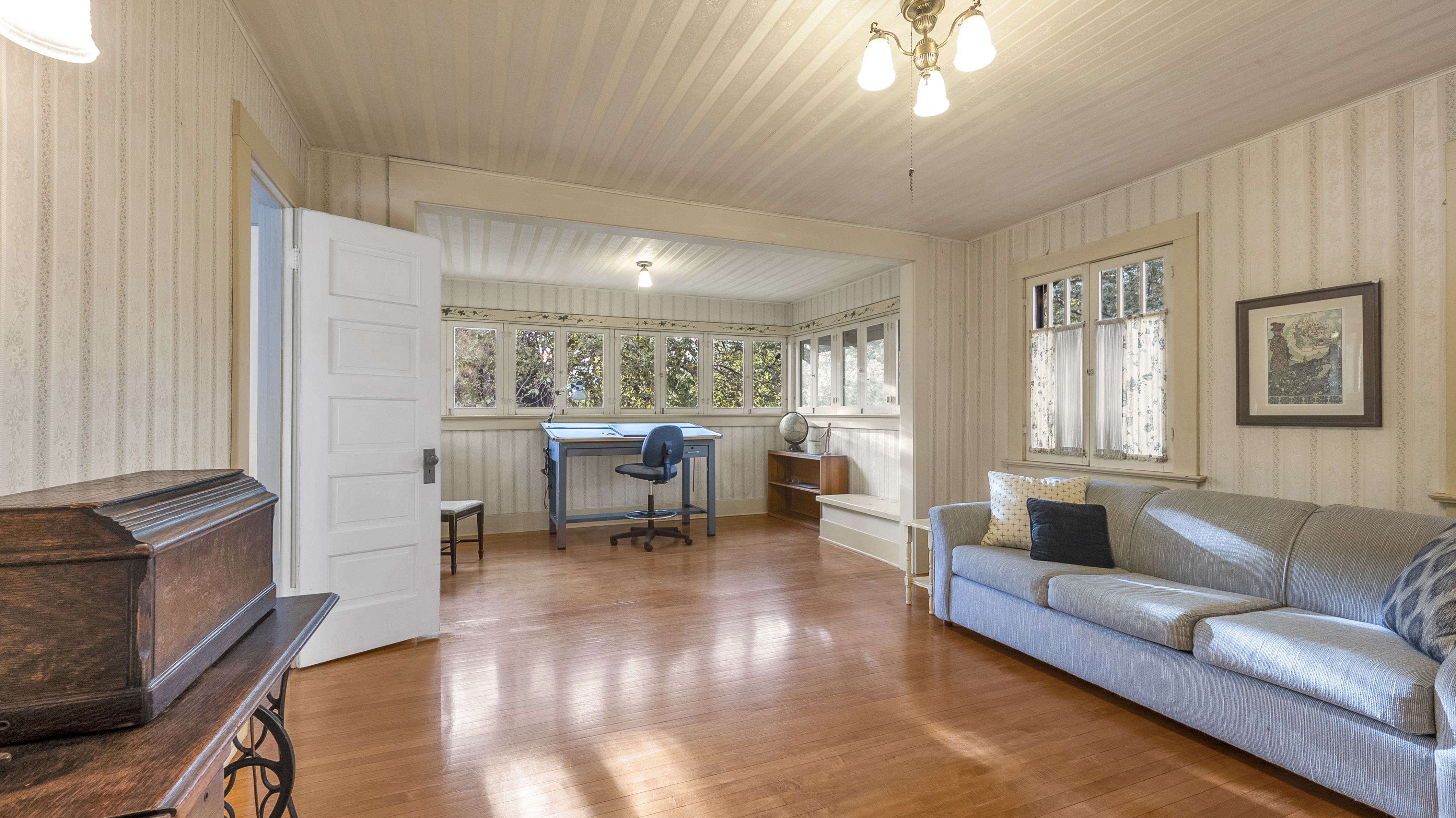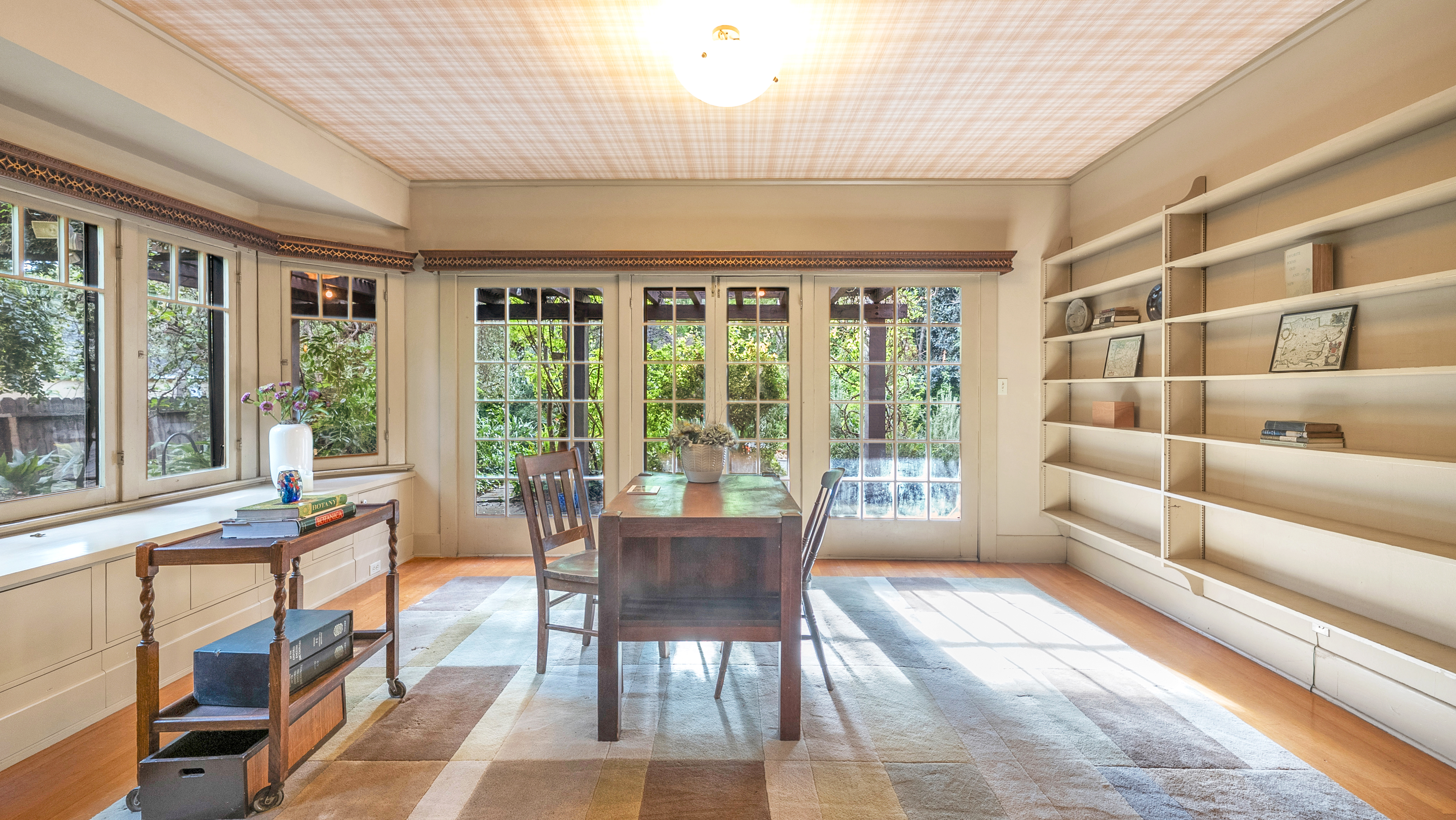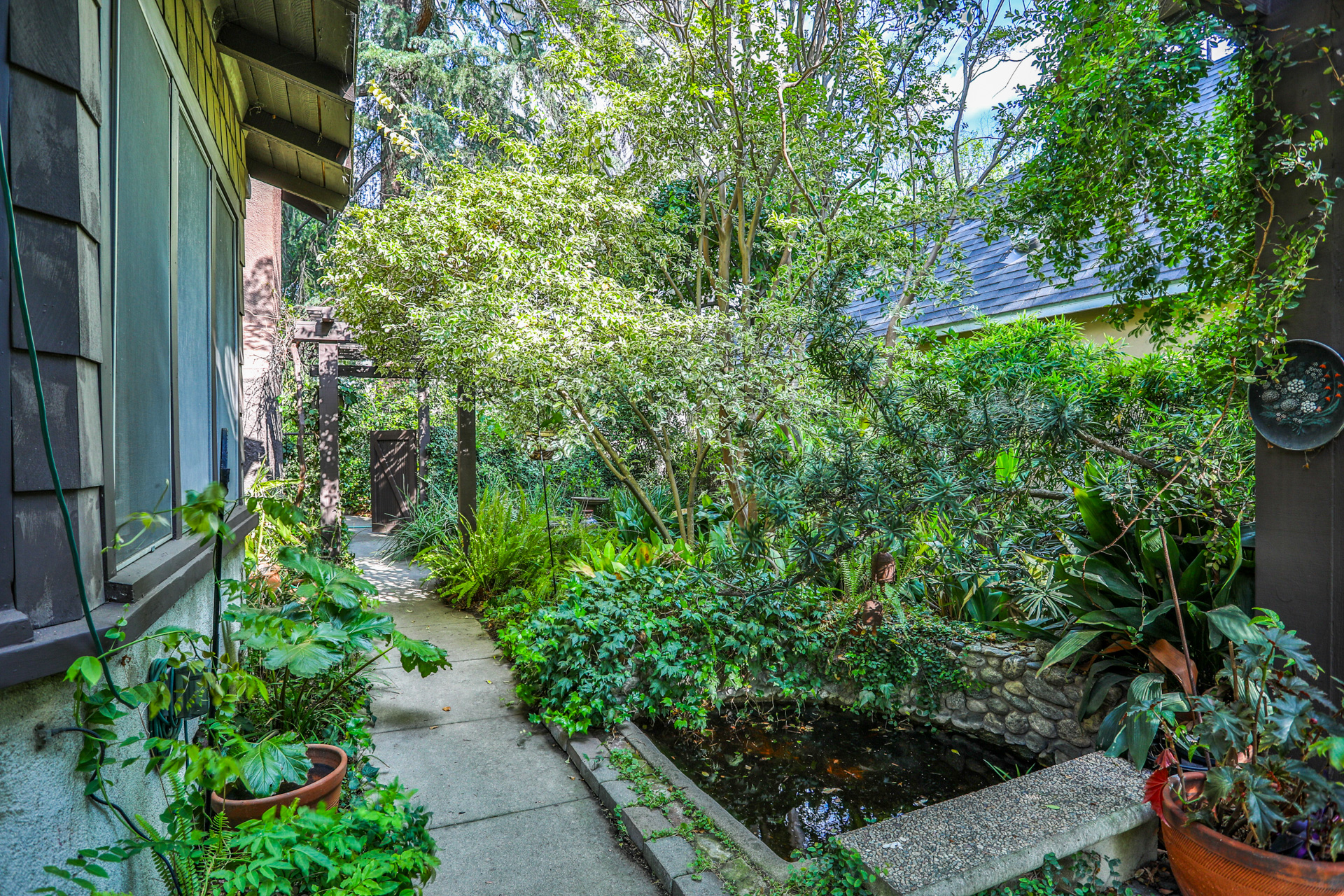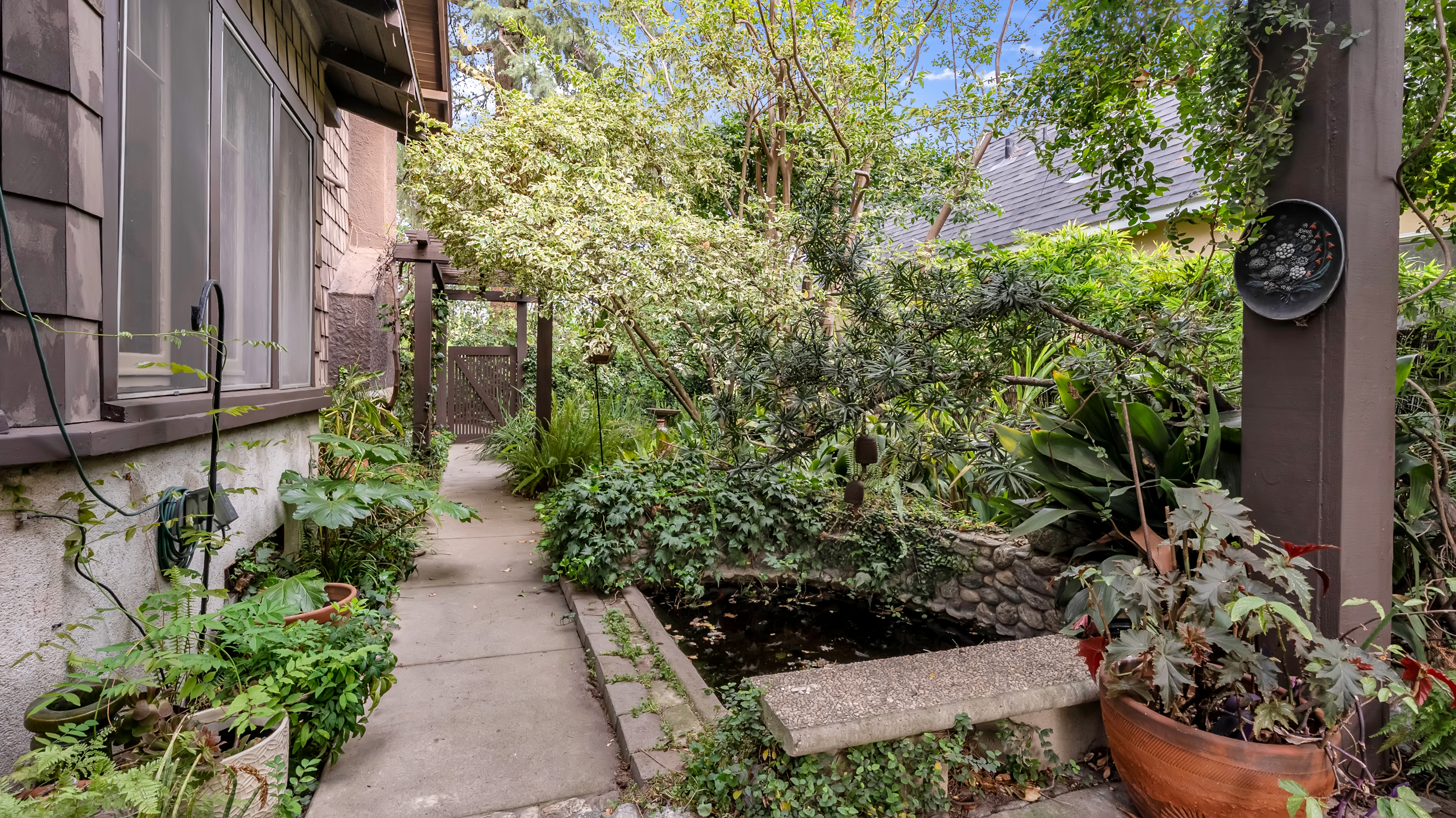 Iconic Greene & Greene Architectural model design, per State of California Historic Resources Inventory Survey. Prime locale across from Memorial Park that has front row seating for the July 4th Parade and additional neighborhood festivities. Originally built by William Stover and later owned by the Claremont McKenna College family. Expansive covered front porch and porte-cochere grace the front elevation of this magnificent property. Beautiful oak hardwood flooring, multiple built-ins, sliding pocket doors, etc. Central air and heating. Main house includes 4 Bedrooms + Study + Office + Den. Guest House ADU includes a Bedroom & full Bath. Lush foliage and tall mature trees provide a forest like tranquil and picturesque setting. Seldom does a unique residence become available in Claremont's most coveted Claremont Village locale. Long driveway leads to the rear separate guest house and 2-car garage. Convenient to The Claremont Colleges and famed downtown Claremont Village shopping & more. This home would be a prime candidate for Mills Act property tax savings!