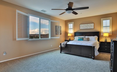 You will find amazing views from this PRIVATE, GATED Serrano Ridge Community in highly sought Sycamore Creek Estates in Corona. This is the Tri-Pointe Homes Plan 4 Model Home! This 4 bedroom, 3 bath Spanish style home is practically new with lots of seller upgrades. The downstairs living area opens up to the large extended kitchen and good size kitchen island. The warm shaker cabinets and stainless appliances were just a few of the upgrades from the original builder. The kitchen also features a large pantry and butler area as you enter from the garage. You have tremendous views from the dining room and living room area with access to the backyard off of the living room. The backyard is low maintenance with concrete and Synthetic Grass. Downstairs you have a full guest bathroom with shower. Upstairs you have a loft area, upstairs laundry room with upgraded cabinets and hanging space. Down the hall from the loft, there are two upstairs guest rooms with upgraded ceiling fans. These rooms share a guest bathroom that has a dual vanity and shower tub combo. The master bedroom is like a retreat as it is away from the other rooms. It also has great views and 2 large walk-in closets with an ensuite bath, soaking tub and separate shower. The two car garage has one garage extended with extra space for storage. The neighborhood has its own playground in walking distance, access to community pool, tennis, fitness center, sports park, and nature reserve!