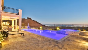 Located in the Sky Ridge Community, this home features a beautiful pool, basket ball court and a California room w/ Ceiling fans and built in speakers. Pavers surround the pool and continue to the side of the house. Fully landscaped with lighting. It also has a 548 sq. ft. Suite attached with 1 bedroom, 1 bath, a living room, kitchenette, stackable laundry hook ups in closet and its own private entrance. The main house has 1 bedroom 1 bathroom on the main floor, and 3 bedrooms 2 bathrooms upstairs with a laundry room and a loft. The master bedroom has a walk in closet and a balcony over looking the city, hills and the pool. The night view is spectacular especially during Christmas with all the beautiful Christmas lights! The kitchen island is huge and great for hosting a party! Living room and dining room flow into the California room with two sliding doors. The tandem garage has been converted to a home gym with built in speakers separated by a door leading to the 2 car garage with a storage closet. This house is a must see! With all its upgrades and features it won't last!