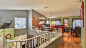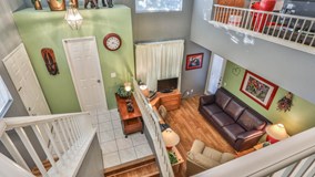 This beautiful, unique property is located in a highly desirable, gated community in Mission Grove with original owners. Upon entry up a few steps to the front porch, you enter the home mid-way between the first and second floors. Downstairs is the den, with backyard access, as well as two bedrooms. The larger bedroom was originally two rooms that were converted to one large room (builder option), which is perfect for use as a secondary master. Closets have additional shelving for organization. Upstairs you will find the kitchen, dining, and family room, as well as the master bedroom. The kitchen features updated Corian countertops, upgraded stainless steel appliances, buffet server into dining area and lots of storage. The kitchen has a sliding glass door that leads out onto an open balcony with wonderful views of the backyard and park next door. Kitchen is open to the dining room and family rooms adjacent to it. Home features wood laminate and ceramic tile throughout, ceiling fans, and unique architectual details that make this a one-of-a-kind home perfect for any family. Newer paint inside and out. Garage has extra storage space and water heater was replaced 5 years ago. Backyard is a wedge-shaped open space with mature trees, newer wood fence, and simple concrete patio that extends the length of the home. No neighbors on either side of property allow for lots of privacy. Home is wired for security system and has motion sensor in the backyard as well as all new smoke detectors. This home has so much to offer and is priced to sell!!!