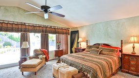 Seller Entertaining Offers Between: $699,999-$749,999. Upgrades Include: *OWNED Electric Solar & Pool Solar*Large patio with full Alumawood cover*Second floor balcony with Alumawood cover*Front and back yard landscaping*Newer exterior paint *Recent "positive" roof inspection + tiles replaced*Custom built-in's and fireplace*Dual pane vinyl windows throughout*New downstairs flooring*Laundry room*Remodeled master bath with free standing tub, tile floor and walk-in closet*Remodeled guest bath with tile floor*Closet organizers (all bedrooms)*Kitchen updated!!! Beautiful park with new kid’s playground directly across the street. Very close drive to shopping, golf, tennis, restaurants, theatre and award winning schools. NO HOA NO MELLO-ROOS! Room for RV PARKING. Close to shopping, golf, tennis, restaurants, theatre & award winning schools. NO HOA NO MELLO-ROOS! Room for RV PARKING. ITEMS TO CONVEY OTHER THAN APPLIANCES ALREADY LISTED "Equipment":Removable pool fence-Built-ins-Living room wall unit-Garage refrigerator-Sheds-Garage cabinets.