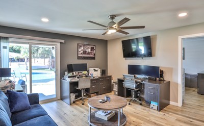 Hurry!! This home won't be available much longer. Come see for yourself, from the beautifully upgraded inside to your very own backyard paradise. Drive in opening your Power Motored Security Gate, and avoid any unwanted company with your Video Intercom located right outside. Walk in to your Forever Wood Floor and enjoy your Renovated Bathrooms all illuminated by the newly placed Recess Lighting found in the Interior and Exterior!! Enjoy a dip in the Resurfaced Pebble Tech Pool looking out to your spacious backyard. Those Palm Tress will surely make it feel like it's a vacation all the time. That and much more!!