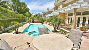 Elegant country French estate. Grand cathedral entry is graced with a sweeping staircase and flowing marble floors. Palatial living room with fireplace, European columns & walls of French doors. The step-up banquet Formal Dining room is accented with coffered ceilings and is perfect for entertaining. The large and welcoming kitchen with center island opens to a window filled daily dining space and family room with built-ins and second fireplace. In the large living room, you will find an exquisite, custom built bar, in which the homeowners spared no expense in building. French doors lead to outdoor sitting areas, pool, spa, outdoor kitchen and gardens. Upstairs luxury is defined by the master bedroom wing complete with a sitting room and fireplace, private viewing balcony, custom his/her closets and a showcase master bathroom. The resort style grounds are ultra private and include a sparkling swimming pool with spa and outdoor BBQ pit.