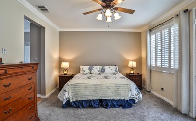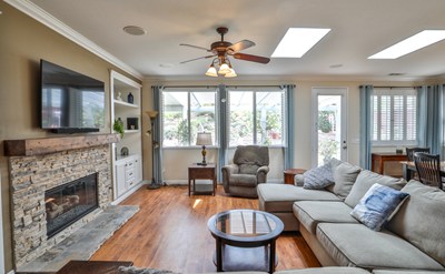 This beautifully maintained home sits on a spacious lot in a quiet community with easy access to the 60 freeway, shopping, and dining. The professionally landscaped front and backyard enhance its standout curb appeal. Inside, you'll find an open floor plan with a cozy living room featuring surround sound, a tile fireplace, recessed lighting, and plantation shutters. The kitchen includes wood-stained cabinets, granite countertops and backsplash, a dual sink, and a large peninsula.
