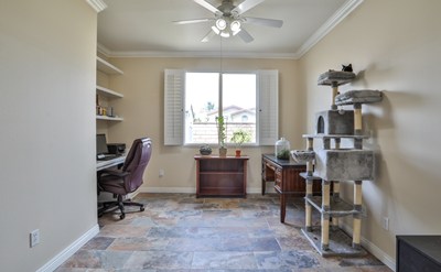The primary suite offers backyard access, a walk-in closet, dual vanities, a walk-in shower, and a soaking tub. Two additional bedrooms provide ample space and natural light, while a versatile den can easily be converted into a 4th bedroom. There's also a laundry room with built-in storage and a full guest bathroom.