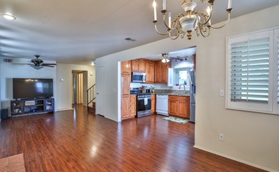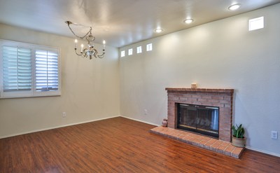 This attractive SFR home features a first floor bedroom and full bathroom, and upstairs there are two primary bedrooms with ensuite bathrooms and walk-in closets. Plantation shutters throughout, cozy brick fireplace, updated kitchen with newer gas stove and microwave, garage door, A/C unit and upstairs carpeting. Fully fenced low maintenance backyard and side yard (perfect for kids and pets!), guest parking space #327, low HOA and no Mello-Roos.