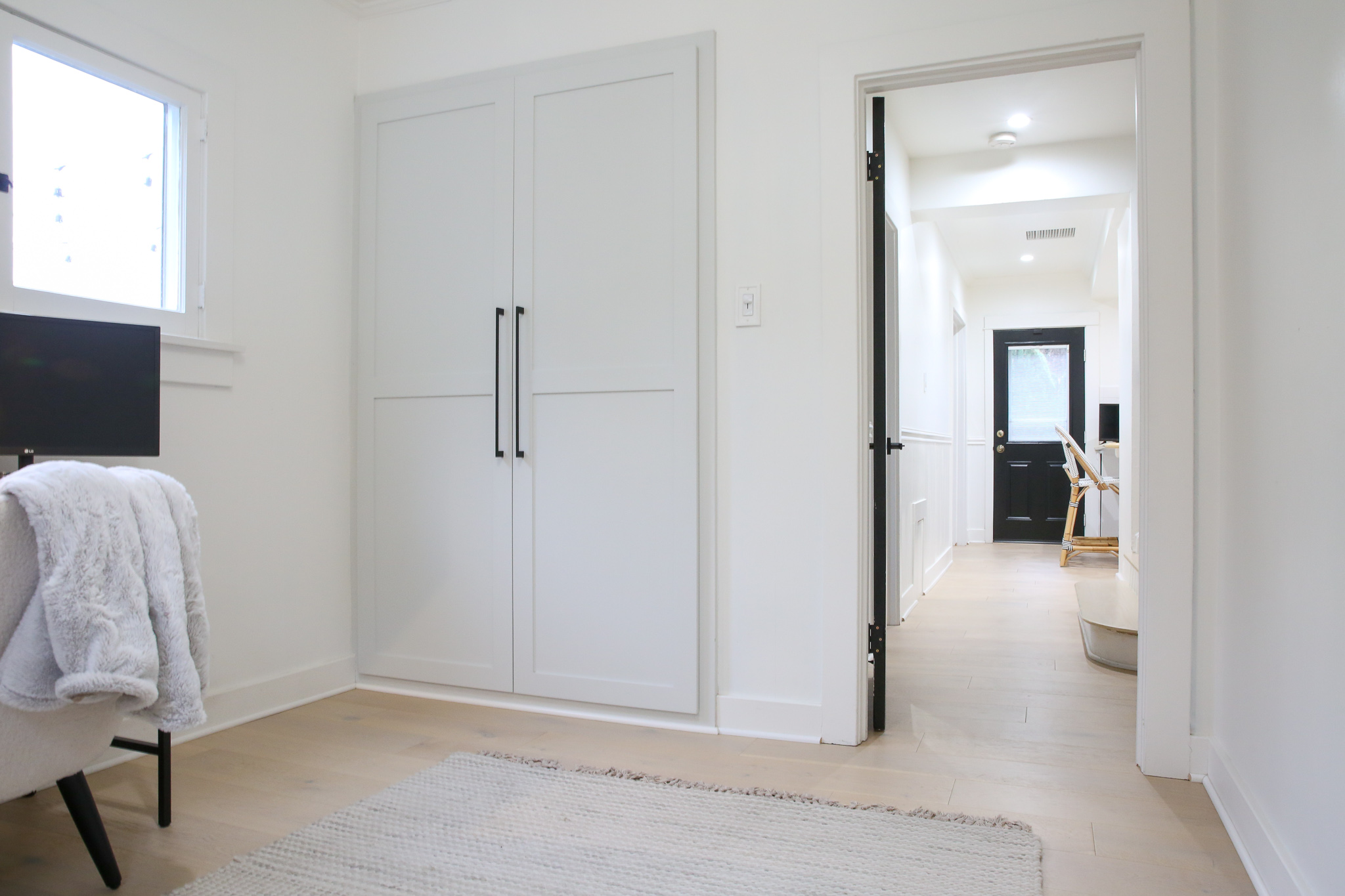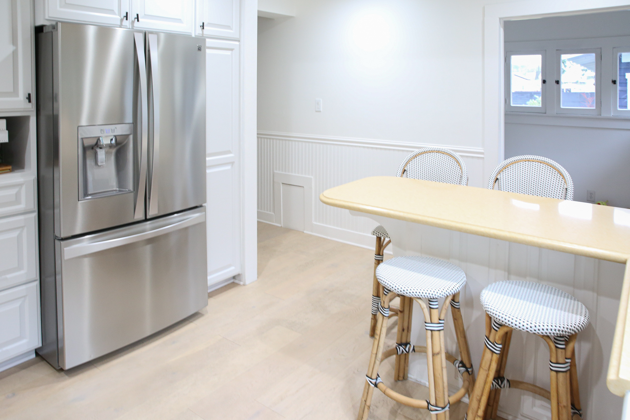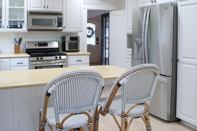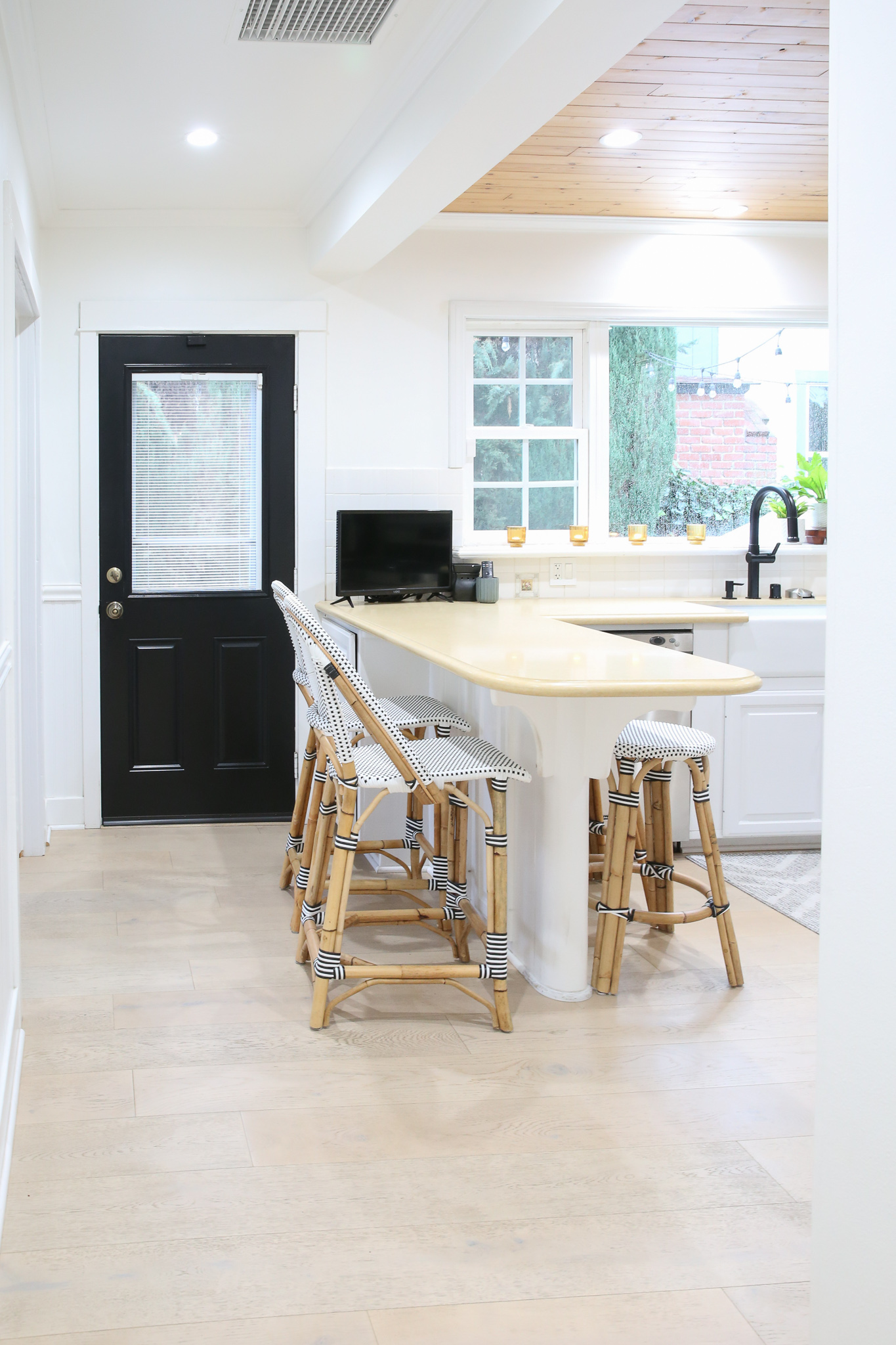 The charming kitchen and formal dining are sure to set your heart aflutter. Perfectly nestled by the kitchen is the spacious walk-in laundry room with a view of the verdant backyard. Plus, it's equipped with the finest soft-close cabinetry, Caesarstone counters and modern fixtures.