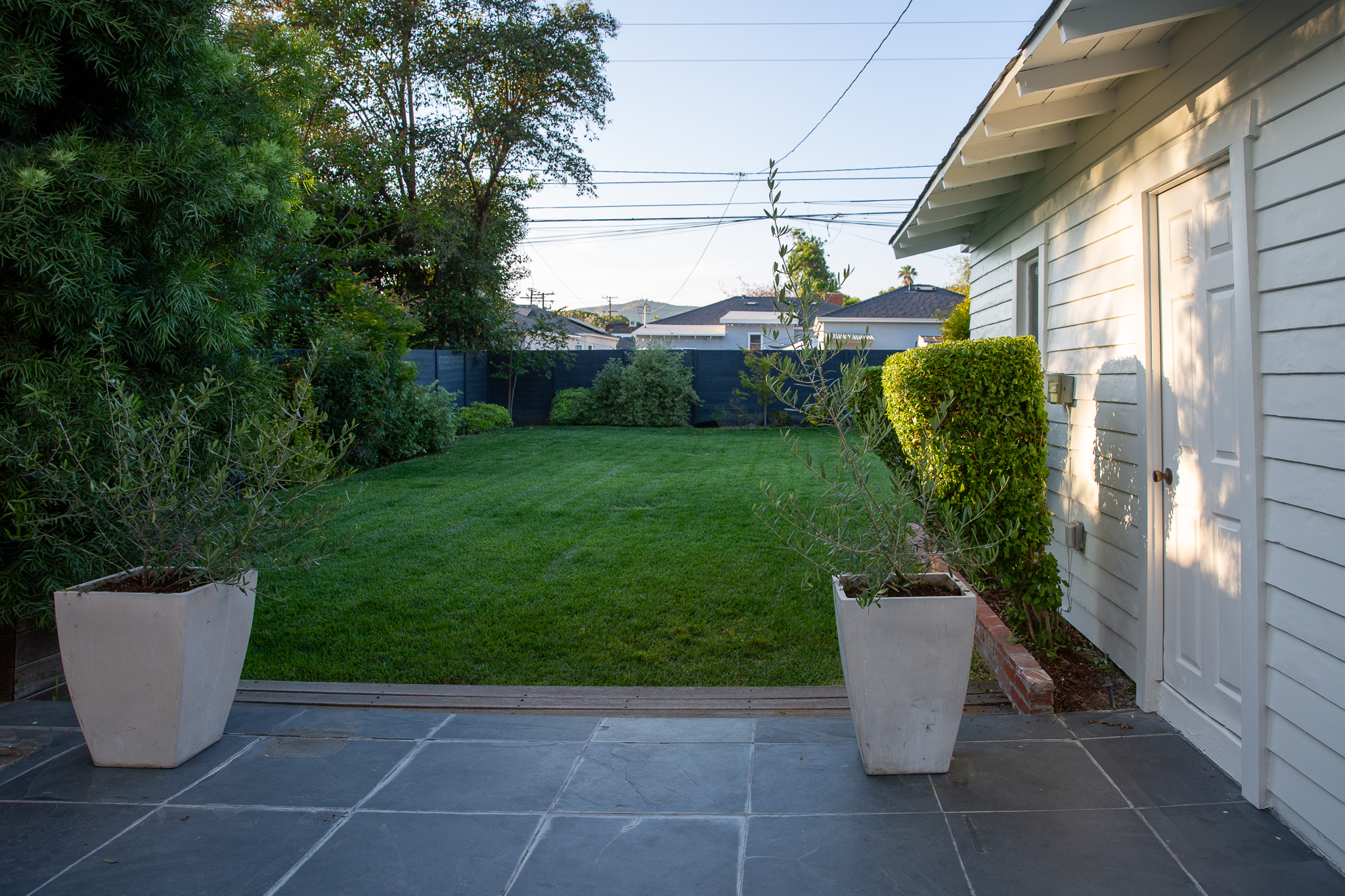 The enclosed backyard with plush landscaping, hardscaping and privacy modern wood fencing are the perfect setting to host family and friends. The outdoor is primed for al fresco soirees so go grab your favorite drink. While you are sipping, you can't help but ponder the process of installing a pool...check with the city and ask how to get started.