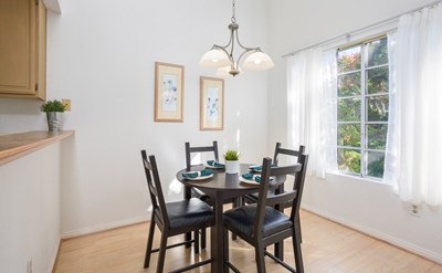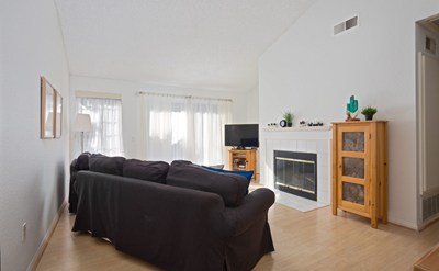 A rare find! This is super clean upper corner unit with vaulted ceilings, one bedroom & one bath, with a private 2 car detached garage. As you enter the home at the living room, where there is lovely laminated flooring and a cozy fireplace. The living room looks out over a nice green landscape and opens up to the private balcony which is great for entertaining! The kitchen features tile counters, wood cabinets and is open to the dining area. The oversized bedroom has a great walk-in closet and looks out over green tree tops. The unit features central heat, air and a full size stacking laundry area in the hallway next to the bathroom. This location is quiet and surrounded by lush trees and landscaping. Harbor Gate is a very well maintained community with beautiful landscaping, running streams and a community pool. Great central location; close to shopping, dining, the Harbor and 110 Freeways. Call for a showing!