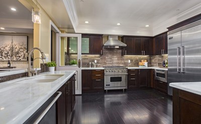 This newer, impeccably maintained 2 + 2 luxury condo is located in the highly coveted Terra Bella complex, close to the shops & restaurants in the heart of Pasadena. This end-unit has been nicely upgraded with custom window coverings, refinished maple engineered wood floors, new lighting and fresh paint. The living room features a coffered ceiling, attractive fireplace & built-in shelving and opens to the spacious dining area and breakfast bar that lead into the gorgeously remodeled gourmet kitchen with newer Viking appliances and marble countertops. The master bedroom has two walk-in closets and a luxurious spa-like bath with dual vanities, oversized shower and separate tub. There's also a convenient in-unit laundry area & the unit includes two assigned side-by-side parking spaces in the subterranean garage as well as a useful storage space. The pièce de résistance is the stunning rooftop patio, offering a sparkling swimming pool, spa, cabanas, BBQs, fire-pits, fitness center and a panoramic view of Pasadena, the city lights & the San Gabriel Mountains. Welcome home!