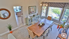 Spectacular hilltop town home, overlooking the 15th fairway of Bear Creek Golf course with amazing mountain and city light views! Located at the end of the cul-de-sac, end/corner unit, with a large driveway. Inviting entry leads to cathedral ceilings, open and light floor plan. Living room with fireplace leads to large extended deck with breathtaking views! Cathedral ceilings compliment dining room as well and more of amazing views. Large Kitchen Includes newer range and dishwasher, breakfast bar, large breakfast nook, and more of heart-stopping views! Three bedrooms, three bathrooms, two car garage. Well maintained home with neutral decor. Beautifully appointed master bedroom leads to a wonderful patio with a fenced grass yard, and more views of the golf course and stunning Bear Creek residences. Gate guarded community offers full use of two association swimming pools, spa, heath club, tennis courts and playground. HOA includes all yard services, outside water and trash. Golf Club and social memberships are available through Bear Creek Golf Club. Elegant living at its best! Located within excellent and award winning Murrieta Valley Unified School District, with outstanding academic performance index - API (913 - E.S, 884 - M.S, 848 - H.S). Welcome Home!
