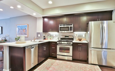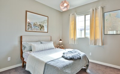 On this floor you will find a perfect space for your guests to rest their heads, or an office space perfect for remote work. Retire upstairs to the top floor that boasts two ensuite bedrooms. The larger bedroom has three large closets and extra high ceilings. This beautiful unit also has two private outdoor spaces for your enjoyment. The community offers a picnic area, dog runs, and plenty of lush greenery that make it feel like an oasis in the city. Come and see this one, you're going to love it!