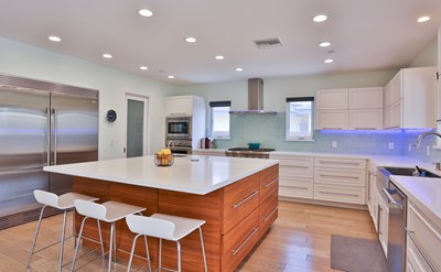 Situated on a quiet cul-de-sac, bright & airy best describes this custom designed & completely rebuilt home. Low maintenance artificial grass welcomes you to the double front doors which open to a two-story foyer, leading into an expansive, breath taking, open floor plan consisting of the living room, dining room, & kitchen. Living room is adorned with a wall of built-in shelves & modern gas fireplace. Kitchen boasts extra wide spacing between the Omega cabinetry and the massive walnut island w/ custom beverage center, filtered water station, prep sink & bar seating. Thermador appliances & a spacious pantry highlight the chef’s paradise. There is also a separate family room, an office/den that has a custom built-in queen-sized Murphy bed that doubles as a bookshelf, a laundry room w/ sink, a full bath & a closet under the stairs. Upstairs are all 4 bedrooms including the spacious master suite featuring a balcony, his & hers walk-in closet, generous shower w/ bench seat & a standalone tub. The other 3 bedrooms w/ custom closets & a full bath w/ double sinks complete the second story. The backyard features a saltwater pool, patio area, mountain views & detached two-car garage. Close to award-winning Arcadia schools, this modern masterpiece won’t last long!