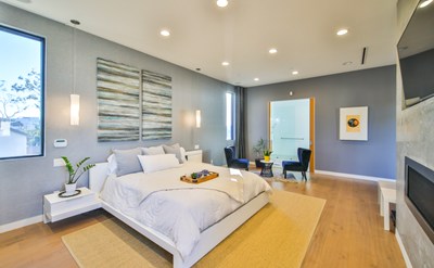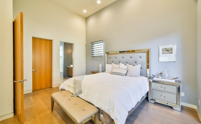 The modern and contemporary home that fulfills all your needs! Enter through your 10 foot pivot door into an expansive open floor plan with 14 foot ceilings. Featuring 5 bedrooms, 5.5 designer bathrooms on 4,400 sq ft. Natural light beams into the large windows in the living spaces, and a security/camera system gives you a sense of security and protection to help you feel at ease. The first floor is comprised of two living areas and the first bedroom, an 11 foot long kitchen island with pristine Thermador appliances, a built-in fridge and wine fridge. Large sliding doors open to a private entertainer's backyard with pool and spa. The 7,500 square foot lot includes an extra driveway in the back thus including 6 total parking spaces. Back inside, a grand open floating staircase leads to the upstairs bedrooms, each with their own balcony adding an additional 700 square feet, as well as their own en suite bathrooms. The main bedroom includes a DREAM walk in closet you must see to believe. Just moments away from popular retail, restaurants, grocery stores and The Grove, this is a property you won't want to miss!