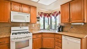 Custom Front yard design with seating area under a fabulous tree that leads to your home with beautiful hard wood flooring, vaulted ceilings both up & downstairs, open kitchen with granite counters, full back splash & bay window, 2 sets of French doors, double loft with balcony, fruit trees, BBQ, fire pit, large Shed and a 3 car garage.