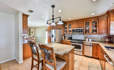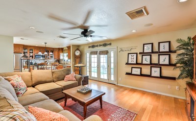 Gorgeous single story home w/all the upgrades located on horse property + RV parking & a workshop. This fantastic home has so much to offer inside & out. True to Horsetown USA the front yard is quaint w/country aesthetics & spacious southern front porch. Once you step in you'll find the home has all the same southern charm + the modern upgrades w/gorgeous wood floors, ceiling fans, recessed lights, & picture framed windows throughout. With both a formal living & family room w/surround sound this home has plenty of space to entertain. The gorgeous updated kitchen features stainless steel appliances, granite counters, custom tile backsplash & opens to the dining & family rooms. The master bedroom is spacious w/2 closets & features an updated master bathroom w/granite counters, tile walls & step in shower. The remaining 2 bedrooms are spacious as well w/lighted ceiling fans & mirrored closet doors & share a gorgeous bathroom w/beautiful tile shower & accent wall & granite counters. The original 2 car garage has been converted into an additional space that could be almost anything; daycare, She/He Shed, in-law quarters, you name it! The rest of the property is as well designed as the inside featuring beautifully manicured backyard w/covered patio, & grass. Continue on back to the large playground & workshop + 2 car garage. Beyond that is a small orchard w/lemon & orange trees & spaces for horses & animals. Plus all the plumbing in the home has been updated to copper plumbing.
