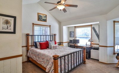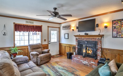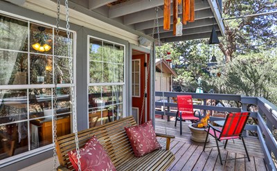 Welcome to this cozy home nestled in the heart of Sugarloaf, a residential community area less than a mile south of Big Bear City. This beautiful property is steps away from trails of the National Forest, offering the perfect balance between big bear city life and the peacefulness of nature. At first sight, you will be captivated by its charming style. The home features a nice sized living room, complete with a cozy fireplace and large windows inviting lots of natural light. Downstairs half bathroom is located in the hallway leading to kitchen. Kitchen is bright and fully integrated with new appliances, plenty of cabinets and countertop space. The kitchen has access to the exterior wrap around porch, perfect for sitting by the firepit, grilling, enjoying a cozy night in the jacuzzi or sitting and simply absorbing the majestic forest views this home has to offer. Upstairs consists of 2 vast sized bedrooms, full bathroom and laundry area. This meticulously maintained property is being sold fully furnished and also includes, Jacuzzi, oversized shed, reverse osmosis system, and offers plenty of under home storage.