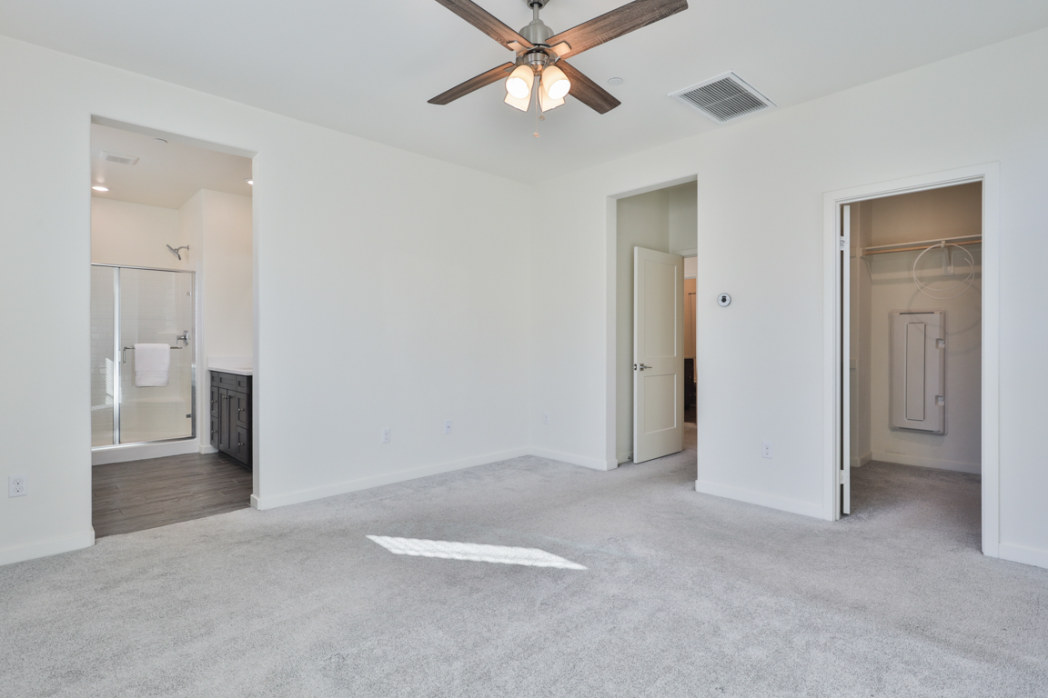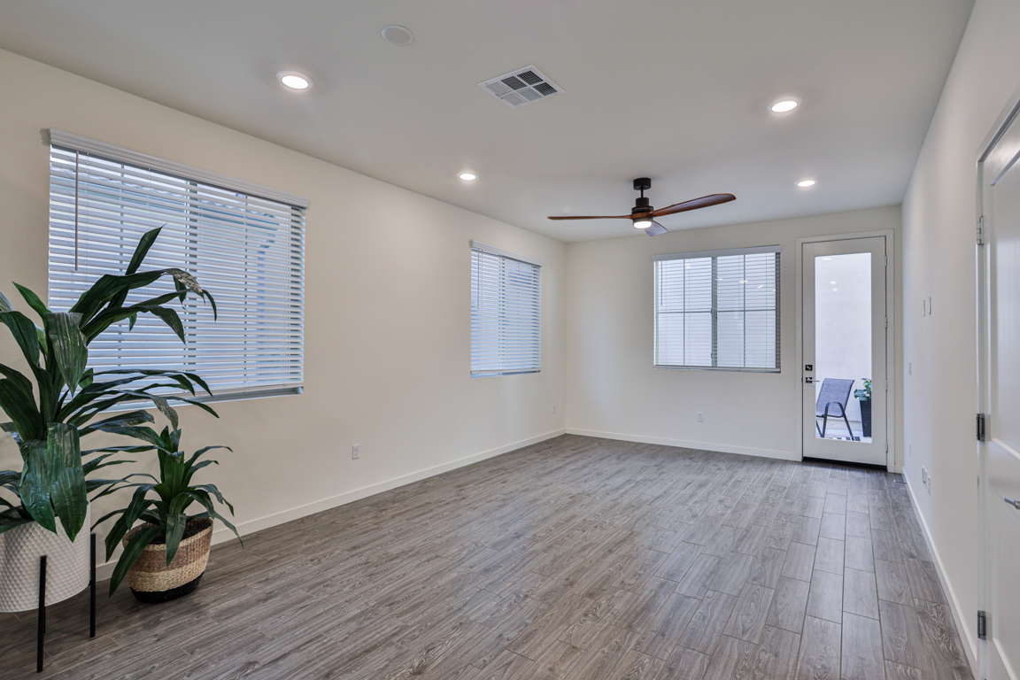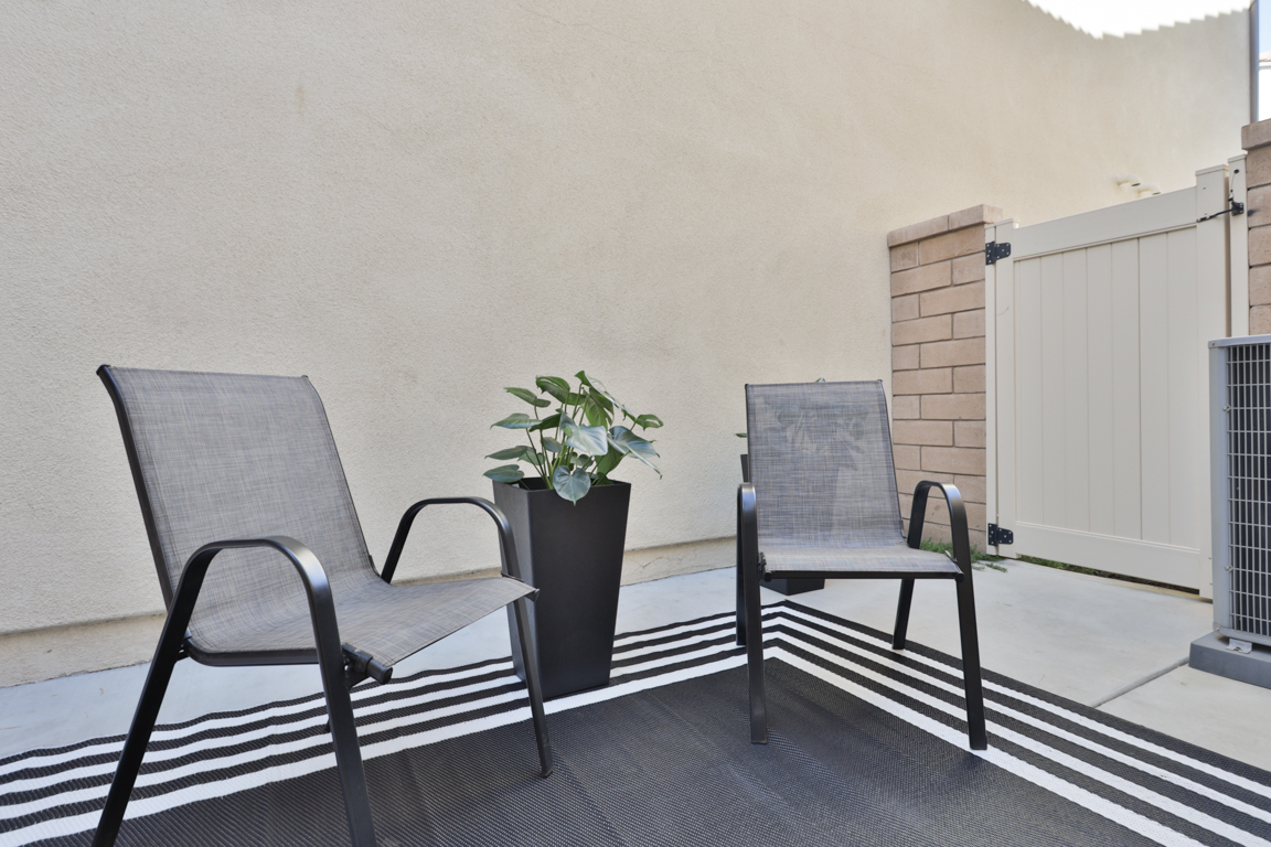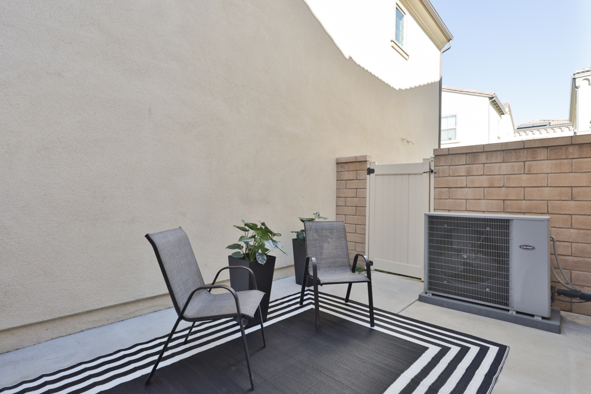 Easy care private fenced patio yard. Two car garage with direct house access, includes an epoxy coated clean floor and electric vehicle charging port. Energy efficient features include solar panels, tankless water heater, dual pane windows and door.
