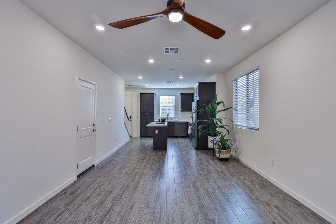 One bedroom and one full bathroom located downstairs on the ground floor. Open light filled floor plan, great room, nook/dining area, large loft/den upstairs, high ceilings throughout. Kitchen with upgraded features including; stainless steel refrigerator, stainless st...