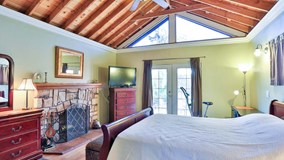 Country tranquility with city amenities! Set amidst the majestic foothills of North Monrovia with a spreading oak tree, this refreshing and relaxing location has side neighbors only with nobody in front or behind. Grand Avenue Park is conveniently just over half a mile away, and the plentiful walking trails in the foothills provide great outdoor recreation. This charming mid-century home sits in the middle of the lot with a sizable front yard, back yard, and a long driveway for several cars or an RV. Flagstone steps grace the front porch, and the front door opens to a bright, and cozy living room with hardwood floors, custom lighting, and newer dual-paned windows. The unique master bedroom has a chalet feel with high, vaulted, natural-wood ceilings, a cozy stone fireplace, an attic loft, and french doors to the shaded rear patio with gable windows above. The backyard is a gardener's delight with a picket-fenced bed behind the kitchen and wide array of producing fruit trees, including avocado, donut peach, apple, tangerine, lemon, lime, mango, guava and pomelo. The newer central A/C and heat will keep you comfortable all year round. All the "popcorn" ceiling was removed, and the tastefully finished exterior has a freshly painted look. Welcome home!