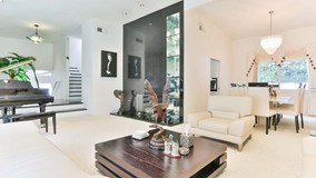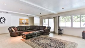 Prime Encino location south of Ventura in a multi-million dollar neighborhood offering easy access to freeways is located on a private cul-de-sac. This luxurious & spacious 3,336 sq. ft. 5 bed + 4 bath Estate has a versatile and open tri-level floorplan. Amenities include: 3 car garage, Chef's granite kitchen, step-down living room with remote fireplace, a separate oversized family room with a wet-bar and built-in media storage, large master suite with a luxury bath, maid's quarters with separate bath, recessed lighting throughout, high end bathroom fixtures, engineered Akoya white hardwood flooring upstairs & many more to list. Outside, enjoy the private back yard with a gorgeous sparkling pool. This Estate sits on a 9,598 sq. ft. lot that offers privacy & security provided by an automatic Iron Gate and installed security alarm system. Alarm System, Garage and AC are Wi Fi enabled and can be controlled remotely. Must see!!!