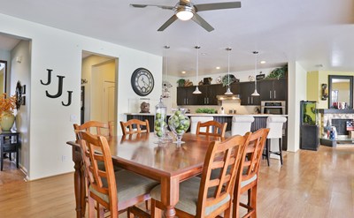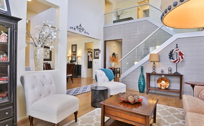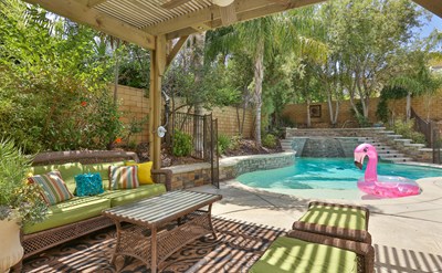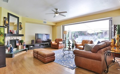 Luxurious pool home home w/5 beds, 4 baths, located at the end of a cul-de-sac w/palm tree lined driveway & lighted walkway to the front door. Step into the front entry to high ceilings into the formal living room w/plantation shutters found throughout the home. The dining room has a butlers pantry conveniently connecting the kitchen & informal eating area. The kitchen opens to the living spaces & features a large breakfast bar, walk in pantry, stainless steel appliances, & beautiful countertops & backsplash. The family room has a fireplace & entertainment niche. The family room & dining area both feature panoramic sliding glass doors w/automatic shade & retractable shade outside the family room. A downstairs bedroom w/full bathroom, as well a work out room complete the downstairs. The stairs w/glass & metal railing lead to the large master bedroom w/retreat & luxurious master bathroom featuring dual sinks, vanity, large soaking tub & shower w/rainshower fixture & tiled accent wall. The 3rd bedroom is spacious w/massive closet & private bathroom. The remaining 2 bedrooms are spacious & share a jack-n-jill bathroom. Also upstairs is the laundry room w/storage & sink. Relax in your California room featuring 3 lighted ceiling fans, recessed lights, glass louvered sliding balcony doors or in the 4 person sauna. The pool features a sun shelf, slate rock water feature, lighted steps to the spa & glass security fence.