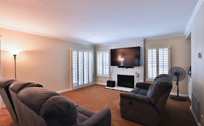 Inside, you'll find brand new paint, wood shutters, ceiling fans, and a remodeled kitchen. The home offers three cozy fireplaces, adding warmth and charm to the living spaces. The expansive entertainment room includes a bar and balcony, making it an ideal space for gatherings.