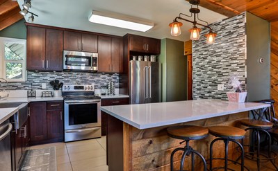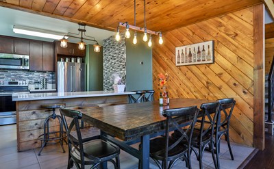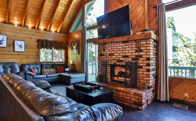 Welcome to the elegance and many comforts of Chateau de Vin. This 4 bedroom, 2.5 bath home, re-envisioned by a professional Interior Designer, is simply amazing! Each of the 3 stories offers unique touches, earning Chateau de Vin a 5-Star rating on AirBnB and many other websites with a solid reservation record. On the main level, the kitchen boasts of stainless-steel appliances including an induction cooktop and convection oven, solid wood cabinets, Italian porcelain flooring, glass mosaic backsplash, and quartz countertops. The open concept living and dining rooms feature designer espresso laminate wood flooring, a gas/wood burning fireplace, and beautiful mountain views from the cathedral windows. Two generous guest bedrooms, full bathroom, and storage areas round out the features of the main floor. Striking wrought iron hand railing and rods escort you and your guests to the sizeable loft area outside of the master guest suite. The entire third floor has waterproof gray toned vinyl wood planks, including the large walk-in closet. The ground floor features espresso color textured laminate wood throughout, upgraded bathroom with quartz countertops, gas/wood burning fireplace, laundry room, and its own entrance. Chateau de Vin also includes a fully paid solar electric system, 2 separate parking areas to accommodate up to 6 vehicles, newly refinished wraparound porch, and currently is permitted to house 16 overnight guests. Ownership of Chateau de Vin includes Lake Rights!