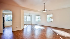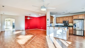 Invitational two model home spacious and open with over 2000 ft. two bedroom two bath plus den office lovely travertine tile entrance and laminate flooring Beautiful leaded glass in dining room and great room nice kitchen with granite +2 car garage and golf cart parking make this home a must see call today located in 55+ community of Fourseasons.