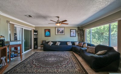 Single story 3 bedroom 2 bathroom family home located on an oversized lot + and an almost complete addition that includes a bedroom and bathroom with private entry from the garage. This wonderful family home features a formal entryway that leads into a spacious living room with a cozy fireplace, lighted ceiling fan, tile flooring and crown molding. From the living room you can step down into the added family room that is currently used as a bedroom. The kitchen is spacious with plenty of counter space and cabinets and opens to the dining room which offers more space with built in pantry cabinets. There is an addition that is nearly completed and would add a 4th bedroom and 3rd bathroom and features an entrance from the garage or patio making it perfect for a family member or as a potential rental. The yard is drought tolerant with artificial turf and features 2 shed in the backyard.