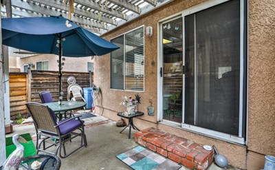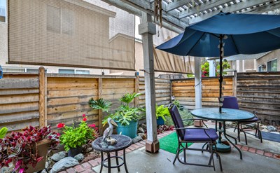 The private, fenced patio—complete with shade covering—offers an ideal setting for morning coffee, casual dining, or entertaining guests. Upstairs, the generous primary suite features a large walk-in closet and an en-suite bathroom, while two additional bedrooms provide flexibility for guests, family, or a dedicated home office.
