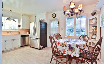 First time on the market in 37 years is this beautiful California Ranch home which has the epitome of curb appeal. A wood picket fence, mature olive tree, white roses, brick walkway, and wood shutters welcome you to the front door. Upon entering this well-maintained 3-bedroom, 1-3/4 bathroom home are the original hardwood floors. The stepdown living room offers a brick wood-burning fireplace with original mantle, original tongue and groove wood beam ceiling, parquet wood flooring, and built-in bookcases; details not found in many of today's homes. This large room is very versatile and can be arranged to fit your lifestyle. When you enter the original eat-in kitchen off the living room, your will notice the old-world tile that has been beautifully maintained! Also, there is plenty of cabinet storage! Step up into the family room (which could be used as a 3rd bedroom), where true divided light French doors make this room feel open and lets in natural light. As you make your way down the hallway, you will notice the attention to detail in the crown molding, chair rail, ceiling light fixtures, and wall sconces. Off the hallway is a ¾ bathroom with plantation shutters and an updated shower which was done to maintain the style of the home. Hardwood floors continue down the hallway into 2nd of the three bedrooms. Once in the bedroom, you will notice the crown molding, chair rail, and plantation shutters, large closet doors with plenty of closet space. Past the second bedroom is the full bathroom with the original deep cast iron bathtub, large counter surface, full-height linen storage cabinet, and plantation shutters. The 3rd bedroom also offers additional crown moulding and chair rails. Plenty of natural light comes through the plantation shutters, with the option to darken the room to your liking. A large, covered patio in the back yard opens up to a spacious yard with mature trees. This wonderful home offers a two-car garage, an updated concrete driveway, and a new Composition Shake Style roof done in 2014. A sizeable gated area beyond the driveway can possibly serve for RV parking and extra storage space. There is central heat and air conditioning. You owe it to yourself to see this fantastic property.