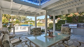 REDUCED OVER $50,000! SELLER MOTIVATED! Easy drive to Univeristy of California Irvine. Approx. 189 square meters. Beautiful LAKE FRONT single family home in Exclusive "Hidden Lakes" with under-lite PRIVATE DOCK and BOAT INCLUDED! This is an Entertainer's Delight with a fantastic LAKE FRONT open deck, plus a covered patio with micro-mist, cable TV and built-in bar-b-que and bar sink. You will love the custom quartz stone used for flooring in the entry, part of the living room, kitchen, dining room and outside. Sliding glass connects both living room and separate dining room to the outside. New carpet and paint throughout the home. Kitchen is light, bright and gleaming with a new fabulous slab of granite on counter tops and includes all new stainless appliances: side-by-side refrig, stove, micro & dishwasher. Beautiful architectural lines grace the soaring ceilings in the living room to create a very open and spacious feeling. Large built-in TV and excellent surround sound Dolby 7.1 system included. There is a separate Den (could convert to a 4th bedroom if needed) and features french doors out to the front porch area. Upstairs the large master suite with fireplace, large bathroom, lots of closets and open lake views await you. There are two additional bedrooms, guest bath with tub/shower and a nice custom laundry area upstairs. Enjoy, via the HOA dues, the amazing huge community complex with sand entrance lagoon, pools, tennis and B-Ball courts, huge party room, Sunday! Fun Day! and many Holiday community events. Double attached garage, one common wall and additional parking close by.