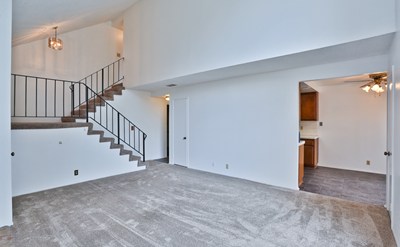 MOVE-IN READY, TWO-STORY, 3 BEDROOMS, 2.5 BA FRONT-END UNIT IN THE GATED COMMUNITY OF TANGLEWOOD. BRAND NEW CENTRAL HEATING AND AIR CONDITIONING & ONE YEAR NEW CARPETING & PAINT THROUGHOUT! Light and bright living room with windows that reach all the way up to the cathedral ceiling…beautiful! Relax in your living room and enjoy the cozy fireplace and the view of the private patio. Two living room closets provide extra storage. Kitchen, dining area & downstairs bathroom with BRAND NEW VINYL FLOORING! The kitchen is open to the dining area with a slider door to the patio. Patio area w/stucco fence allows privacy from the street. The kitchen features a gas range, dishwasher & refrigerator, and plenty of counter space & cabinets, including a pantry. Direct access to the two-car garage w/laundry area and lots of cabinets. Stairway with landing follows the cathedral ceiling up to 3 bedrooms and two bathrooms. The large primary bedroom features dual closets with mirrored sliding doors. The primary bathroom has a single vanity and a separate room for the shower & toilet. There are two additional bedrooms w/the north bedroom featuring a balcony with peek-a-boo mountain views. The bathroom off the hallway features tile floors, single vanity, and a tiled tub/shower. The LOW MONTHLY HOA fee of $220 includes water, trash, & maintenance of common areas. Enjoy the community pool & two spas. This condo is ready for you to move right in and is conveniently located near freeways, shopping, restaurants & schools.