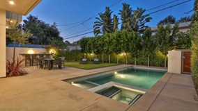 New 2016 custom built 5 bedroom architectural home with amazing attention to every detail. Oversized master + 3 bdrm, all w/ balconies, & office area up and guest bdrm & powder down. All bdrms have great closet space w/ master having dual large closets & linen. Gracious foyer leads on to step down living, family rm, kitchen & dining. All overlooking an entertainment friendly grassy yard w/ sparkling pool, spa, & built-in BBQ bar. Open floor plan w/ skylights, walls of windows and glass make this home very light & bright. Endless features such as high ceilings & LED lighting throughout, chefs kitchen w/ custom built-in glass front cabinetry, top of the line SS appliances, dual zone Nest controlled HVAC, central vac, indoor & outdoor sound system and other impressive features. Easy accessible yard makes this home perfect for families or entertaining. Property is close proximity to restaurants, coffee shops, Westside Pavilion, award winning schools and more.