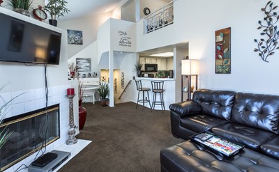 A two story end unit town-home nestled in the rear of the complex for the most privacy has two balconies and direct access from the garage. One large balcony is off the dining and living room and the second (smaller) balcony is off the master bedroom. This 2 bedroom home has an open and airy floor-plan with vaulted ceilings throughout. Views from the kitchen to the dining and living room afford the whole family can be together when meals are being prepared. There is also bar seating looking into the kitchen. A fireplace in the center of the room adorns the living room gives it a quaint & comfy home feel. There is a large open loft upstairs for additional space to relax in private. The master bedroom with en-suite bathroom is spacious and has a walk in closet. The second bedroom is just off the main hallway across from a full guest bath. The complex has a large private community pool with Jacuzzi and bathrooms. Plus there is also a separate playground for the kids. The location can't be beat, situated in a serene winding and peaceful street yet near all amenities including the freeways allows easy access to shopping, evening walks or quicker commutes to work. (Note that owner(s) hold a state of California Real Estate license).