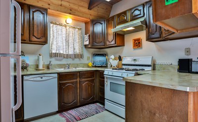 Nice 2 story farmhouse style cabin in excellent condition. This home features a nice open floor plan with 2 bedrooms and 2 full bathrooms with 1020 sq ft of living space, living room with gas fireplace, dining room, indoor laundry room. Back slider that leads to the large deck in the back yard. 2 large bedrooms and 1 bath upstairs with lots of room for storage. Central heat. Lower deck with entrance to the basement.