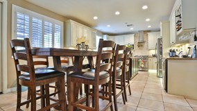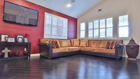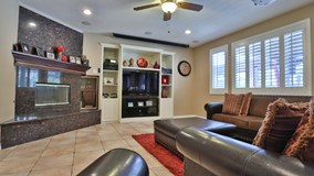 Better than a model home!! Resort style back yard!! Salt water pool with 30 foot rock slide. Over 40 palm trees, two gas fire pits, built in BBQ with Palapa, two patio covers with lighting and fans.