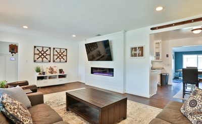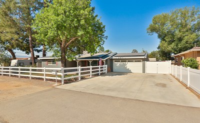 Quaint doesn't even begin to describe this beautiful single story horse property located on a cul-de-sac. From the white estate vinyl fence to the large mature tree offering shade to guests as they approach the inviting front porch this home welcomes you in with it's country charm. Step into the family room that features a custom shiplap accent wall complete with built in electric glass fireplace, recessed lights and vinyl plank flooring that flows throughout the home. The dining space is spacious enough to seat at least 4 and is conveniently located just off the kitchen. The kitchen features brand new countertop, and stainless steel stove. From here your lead into a bonus room featuring a wood burning stove sitting on a brick hearth that harkens back to the wild, wild west. This space also features a guest bathroom and laundry room. The master bedroom is spacious and all of the bedrooms feature lighted ceiling fans, blinds & built in closets. The shared hall bathroom is fully remodeled with custom paint, new vanity, tiled shower with rain showerhead and Bluetooth enabled exhaust fan. The backyard is fully landscaped with covered pergola patio, grass & fruit tree as well as a second structure complete with electrical. This space has so much potential! This home also has RV parking WITH sewer clean out and can accommodate a 42'+ trailer or RV, all new windows, pex plumbing, new floors, nest & ring, epoxy flooring in the garage, 5 year old AC (approx.), 24 solar panels through Sunrun with 72 hr. power backup system, security system with cameras & perimeter lights. All this is located close to the river bed horse trails