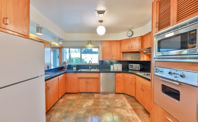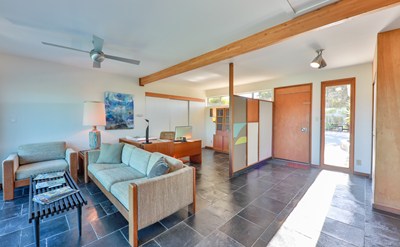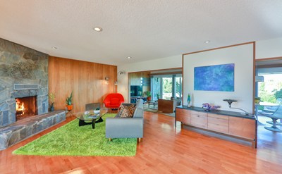 Spacious and Authentic Mid-Century Modern Gem located on a Peaceful and Beautiful One Acre View Lot! Original plans from 1959! Private road ends at this remarkable Mid-Century lovers dream. Stunning Inviting Porch with Beautiful Architectural and Art Elements is one of many patios, where you can take in the views, surroundings, nature, tranquility and wide variety of birds. Floor to Ceiling Windows of the Living Room/Entry offer Panoramic Views of the Valley and Mountains. Lovely Kitchen Includes Authentic 1959 General Electric Oven and Cooktop. Kitchen Opens to Living Room and Dining Room/Family Room with Multiple Sliding Doors Offering More Views. Living Room Includes Beautiful Wood Burning Fireplace. Authentic mid-century furnishings can be included in the sale. Two Master Suites, Three Bathrooms and a Large Den that can be used as a Third Bedroom. Downstairs Master Suite was completely remodeled, it includes heated tile flooring with custom timer and solatubes, elegant walk-in shower, double sinks, two closets and sliding doors leading to another spacious patio. Relax and stargaze from your hot tub, and/or unwind in your private dry/wet sauna. The lot is fully usable. Enjoy gardening and growing your own vegetables and flowers in one of many raised gardens and your greenhouse. Recent upgrades also include new roof, 150 panel custom invisible solar panels/tiles, rain gutters and custom rain collection system of 2,520 gallons, two storage sheds. Zoned for horses.