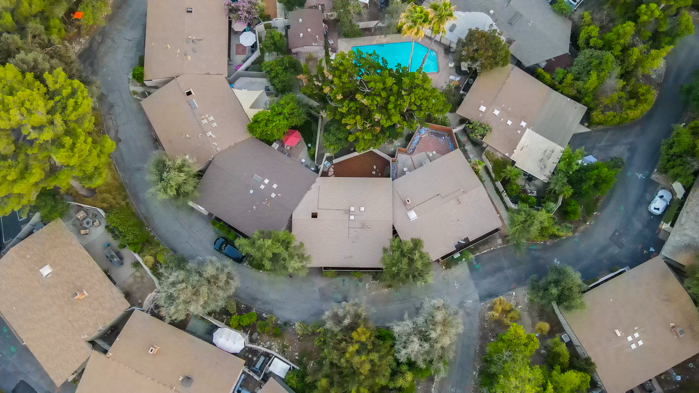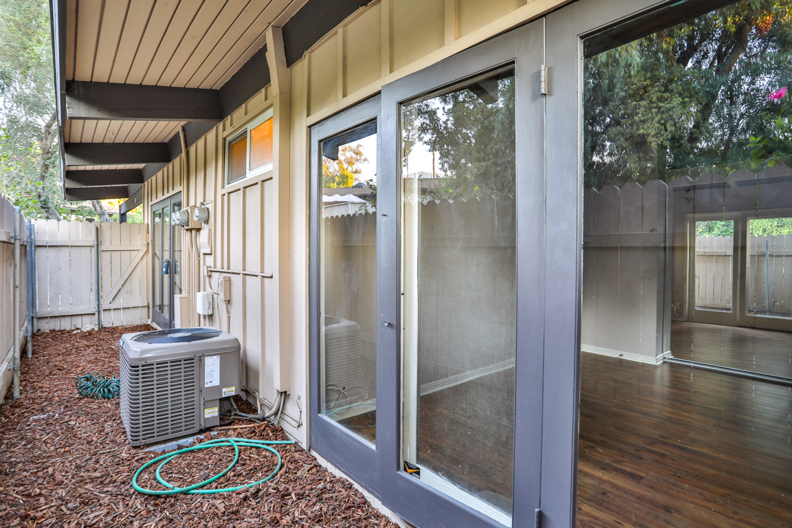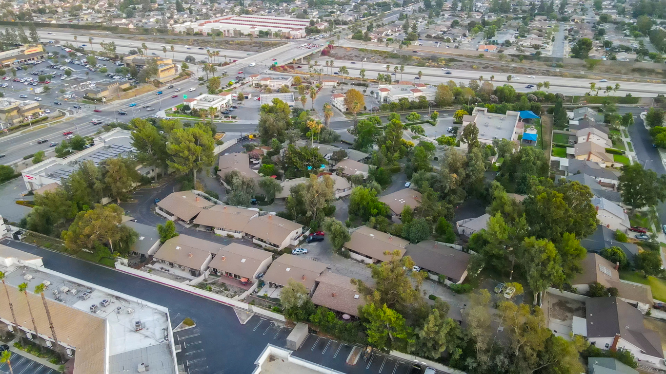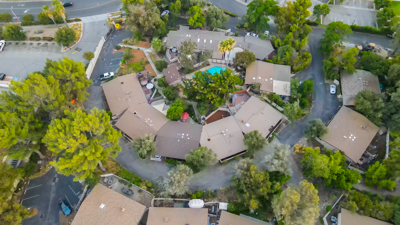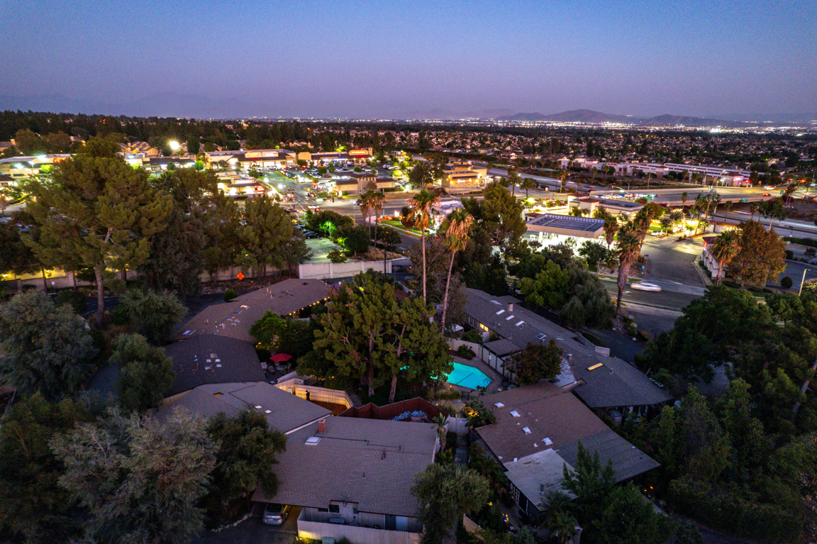 COVETED ALTA LOMA GARDENS MID CENTURY LIVING. Single story condominium on a spacious private elevated lot. Enjoy a sun lit open concept floor plan with high vaulted wood beamed ceilings plus wall-to-wall glass picture windows and clear glass doors. Kitchen with eating counter opens to dining and family living rooms. Spacious indoor laundry room. Includes carport, walk-in storage room, plus plenty of guest parking. Tranquil common grounds provide a community pool, giant trees, exotic plants, and ...
