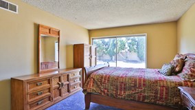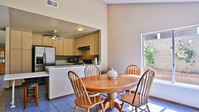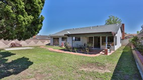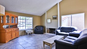 Upon arrival you find a wide driveway with brick accents, a covered entry, lots of flowers and mature landscaping. Through the entry you notice plenty of natural light from ample windows, a fireplace, vaulted ceilings, and new tile floors all wrapped in neutral colors. To your right you find a bedroom currently used as an office with a wide entry, bright window, direct access to the garage and a double door closet. In front of you is the open kitchen, with a 4 door pantry, ceiling fan, and a breakfast bar open to the dining room with lots of natural light vaulted ceiling and tile floors. Though the sliding glass door and you're on the covered brick patio looking at your large yard with a brick walkway and mature trees. One side of the home has a cement walkway and the other has grass and a large planter with several mature Rose bushes. Back inside down the hallway on your left are two good sized secondary bedrooms and the right is a full bath. At the end of the hallway is a large Master Suite with lots of light from a sliding glass door, a large mirrored closet, a wide vanity with plenty of storage and counter space for two. A oversized 2 car garage with lots of storage completes this great home.