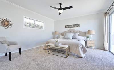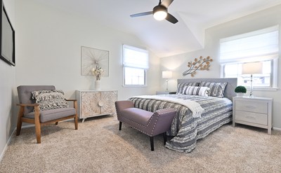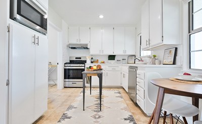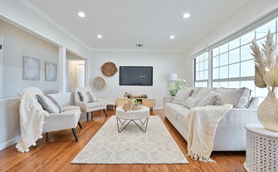 spacious living/dining area with large windows optimizing natural light throughout. This