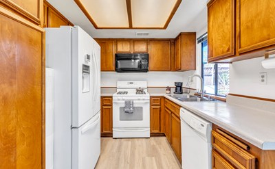 Outside, the property offers a private custom-designed backyard space with fruit trees, a fire pit, an in-ground hot tub, BBQ shelf on the patio, and a fish pond. It’s the perfect place to enjoy the sunny Moreno Valley weather or entertain guests. With ample potential for gardening, outdoor dining, or simply relaxing in the fresh air, the OVERSIZED backyard adds to the appeal of this charming home. The property is also fully fenced with an electric gate and RV Parking for all your toys. As a bonus, there’s another additional carport with built-in lighting/electrical.