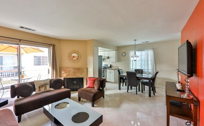 Welcome to Green Villa condominium community! This charming condo/home is centrally located near shopping centers, freeway close and City Hall. Two story end unit was newly remodeled with the latest in style, color, and quality workmanship: Newer paint, porcelain flooring with marble inlays, beautiful custom tile in kitchen and stainless-steel appliances. Downstairs has a bedroom and private bathroom, and 2 car garage access. The upstairs has an open concept and perfect for entertainment! Family living room with marble fireplace and an outside patio/deck to enjoy the beautiful sunset, remodeled kitchen, and dining room. Master bedroom suite with bathroom, vanity cabinet, and spacious closet.