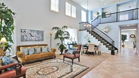 JUST REDUCED!! NO HOA, NO MELLO ROOS, RARE RV ACCESS and PRIVATE BACKYARD with NO REAR NEIGHBORS! This delightful and gorgeous Canyon Ridge 5-bedroom beauty has a lot to offer. Impressive entrance with two-story ceilings over formal living and dining areas. Open floor plan with great spacious layout. Large Family room open to the kitchen features a great fireplace, a TV niche, beautiful flooring, and lots of windows for natural light. Very large Gourmet Upgraded Kitchen has beautiful granite counters tops with a large breakfast counter, stained dark maple cabinetry with lots of storage space, custom tiled backsplash, stainless steel sink and appliances, a large walk-in pantry, oven and Built-in microwave, and a large window that overlooks the private backyard. A Bedroom and upgraded half bathroom downstairs. Spacious Master bedroom with large windows and a fantastic view. Master bathroom suite features his and hers sinks with custom tiled backsplash, a vanity, separate large jetted spa tub and tiled shower, two good size walk-in closets, and tile flooring. Upstairs features a built-in desk, three good size bedrooms, and a tastefully upgraded large guest bathroom with dual sinks. Low maintenance private backyard has hill with greenery and shrubs. It makes for a peaceful surrounding perfect for relaxing and entertaining. An elegant in ground heated lap pool great for exercise completes this great outdoor space. Other features are recessed lighting, a downstairs laundry room with cabinets, tiled counter top and a large sink, plantation shutters, 2 car garage with direct access, oversized driveway, gated and paved RV parking. This Immaculate home is ready to move in and shows like a model home. Great desirable location close to award winning schools, stores, and dining.