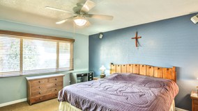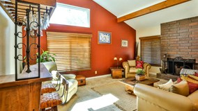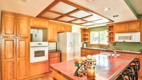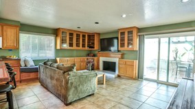Welcome to your North Upland single story home. This spacious home features 2407 sq ft with four bedrooms, two bathrooms, and an office. Formal living room with extra high wood beam ceilings and adjacent formal dining room. Custom tile through-out and custom interior paint. 2 fireplaces, in the living room and family room. The kitchen has been updated with custom cabinets and custom concrete counter tops and lots of extra cabinets for added storage and china display. Kitchen opens nicely to a large family room perfect for entertaining and family gatherings. The family room also has it’s own fireplace to warm up in the cool winter nights. The bedrooms all have ceiling fans, recessed lighting in the kitchen and family room. Updated second bathroom. Enjoy the summer evenings in your spacious backyard, which features several fruit trees, a large covered patio, RV parking, storage shed and mountain views. Lot is large enough for a pool.
