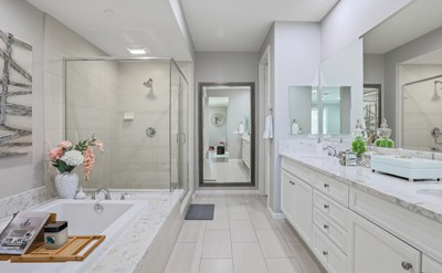 Relax in your exclusive ensuite bathroom: a true oasis with quartz countertops separate shower, stunning soaking tub and water closet.
